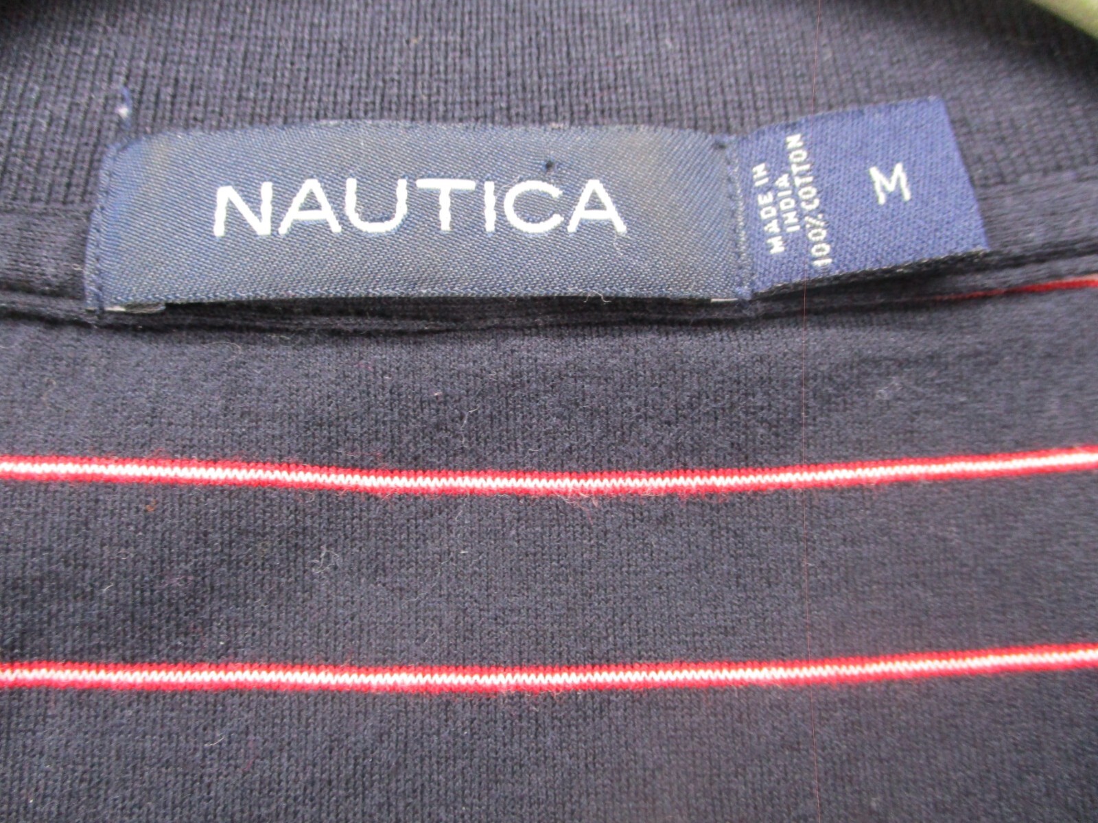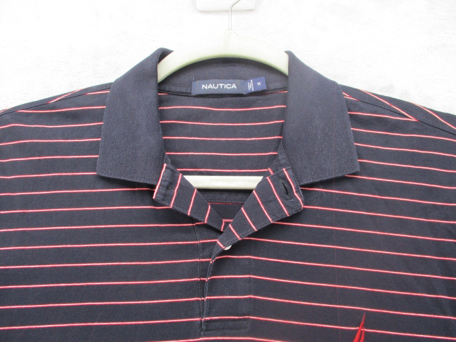 как выглядит Nautica Polo Shirt Mens Medium Black with Red White Stripe 100 Cotton фото