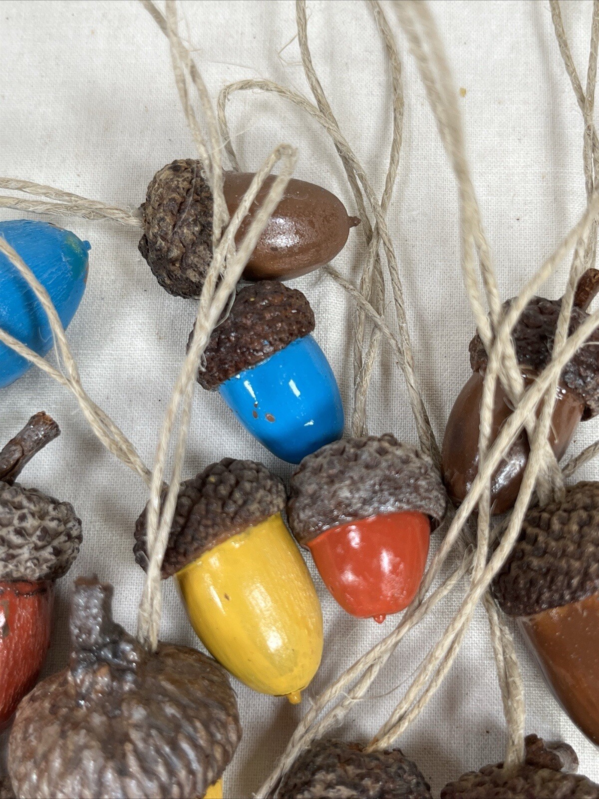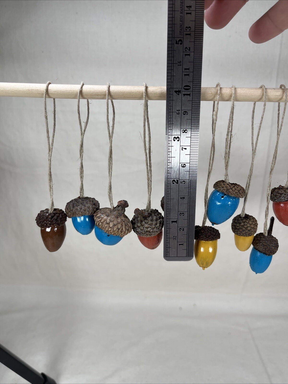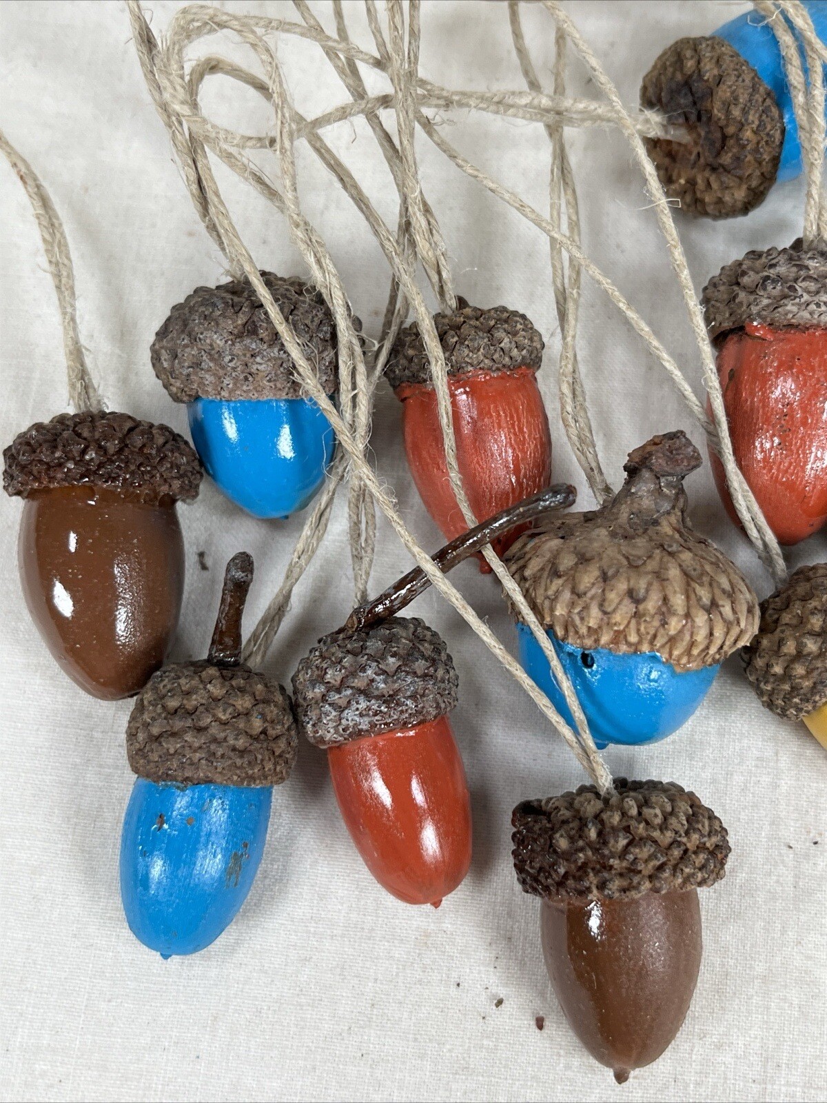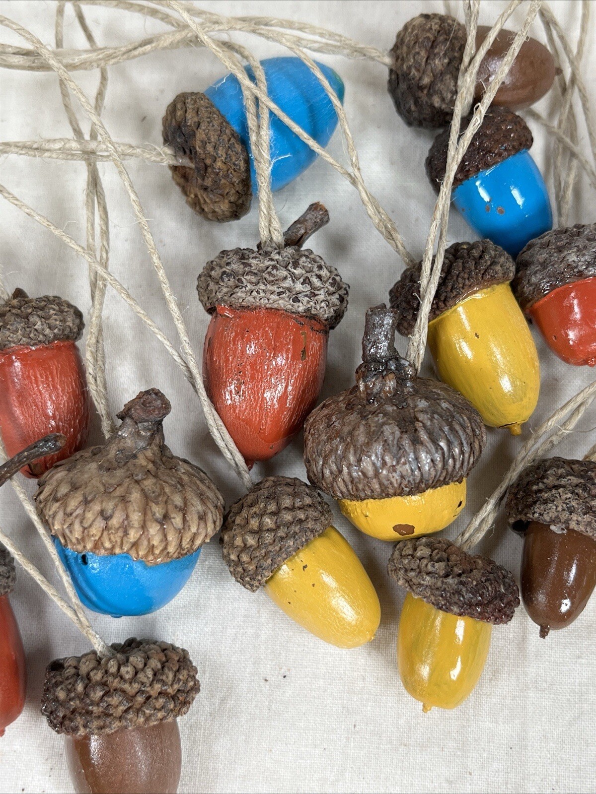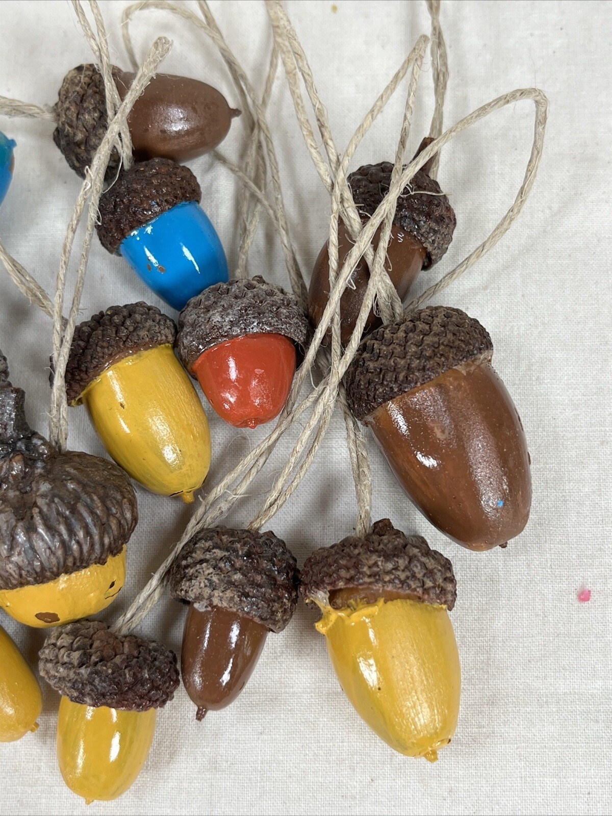 Lot of 20 Whole Natural Acorns Attached Caps w/Hangers Painted Crafts Decoration