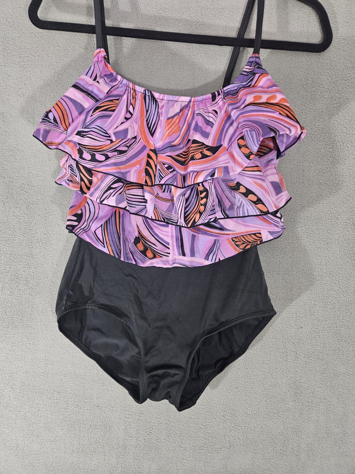 как выглядит Robby Len Swimfashion Womens Tie Dye Top Ruffle SwimSuit Size 12 One Piece 90s фото