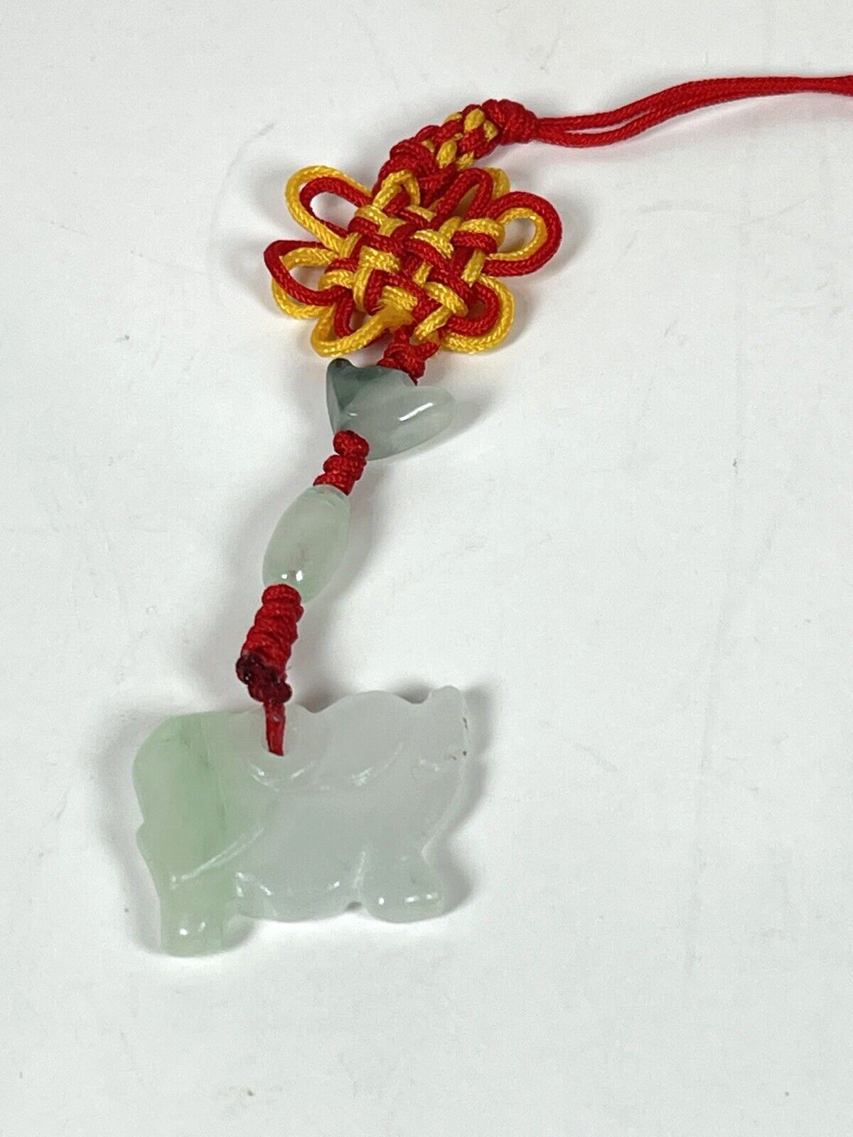 Hand Carved Natural Jade Chinese Zodiac Boar Pendant Knotted CellPhone Car Charm