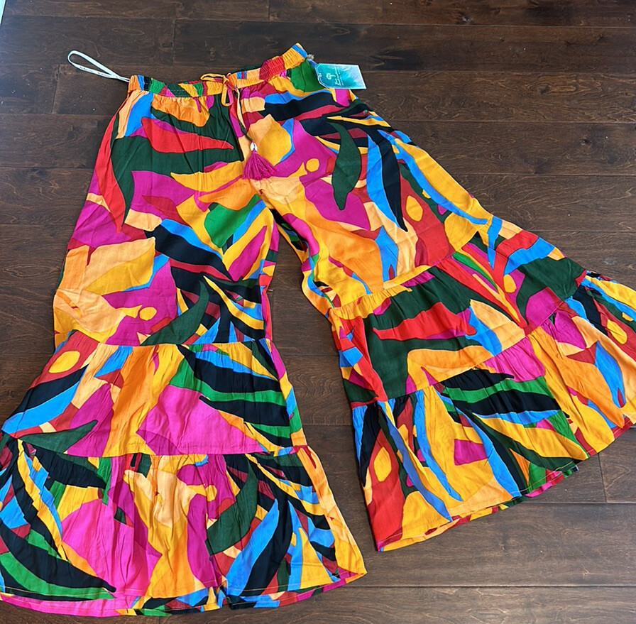 True Destinations Resort Wear Flare Pants Beach Coverup sz M New Wide Leg