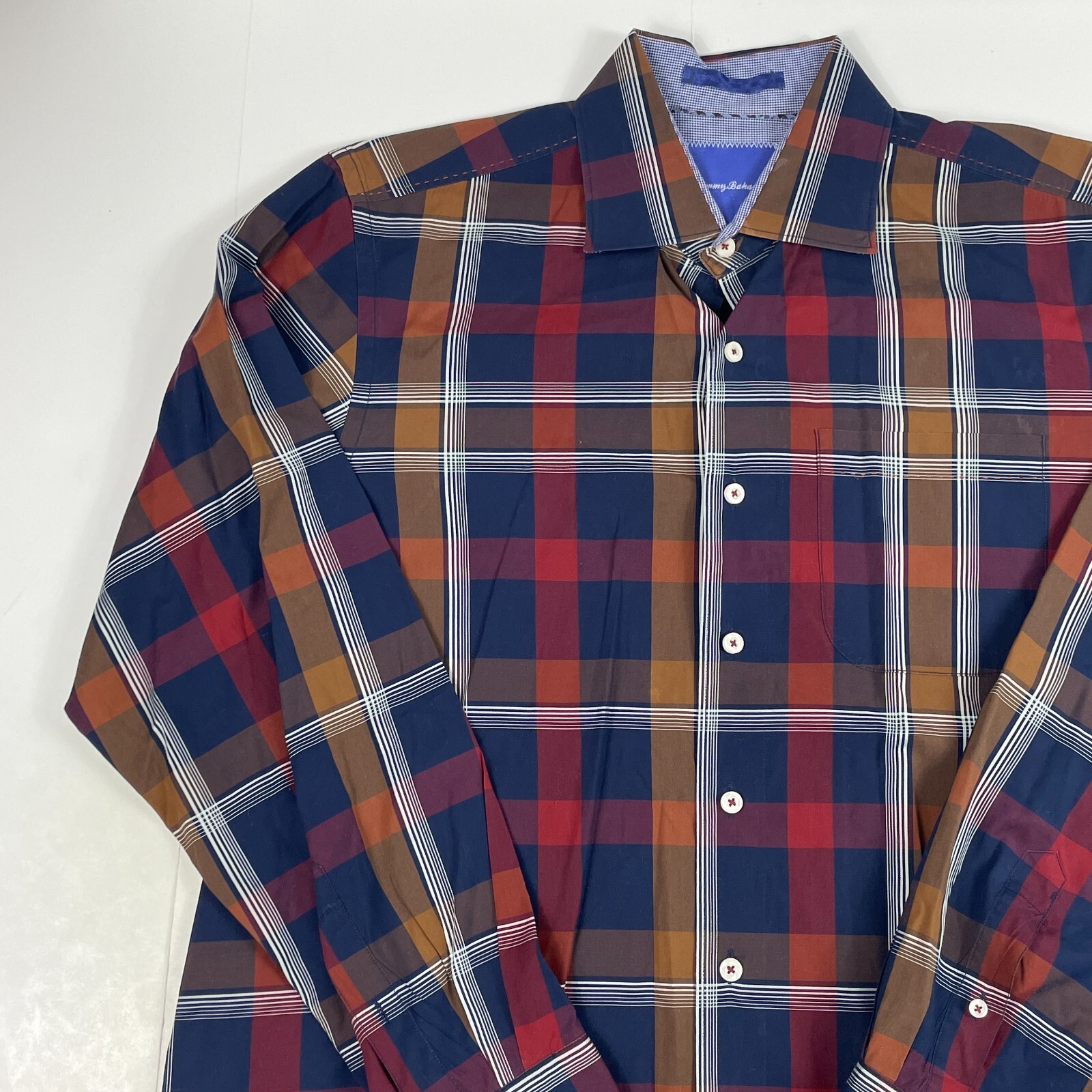 Tommy Bahama Shirt Men Medium Blue Red Long Sleeve Button Up Preppy Casual Plaid