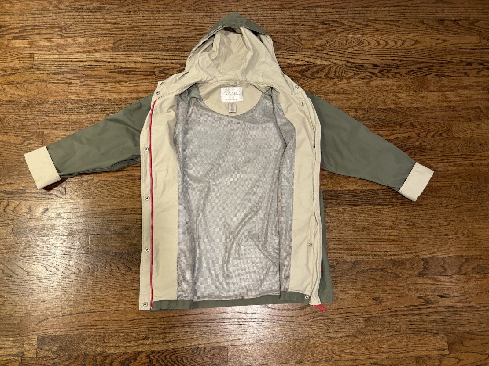 как выглядит Studio Works Jacket Womens Small Outerwear Windbreaker Tan Hooded Lightweight фото