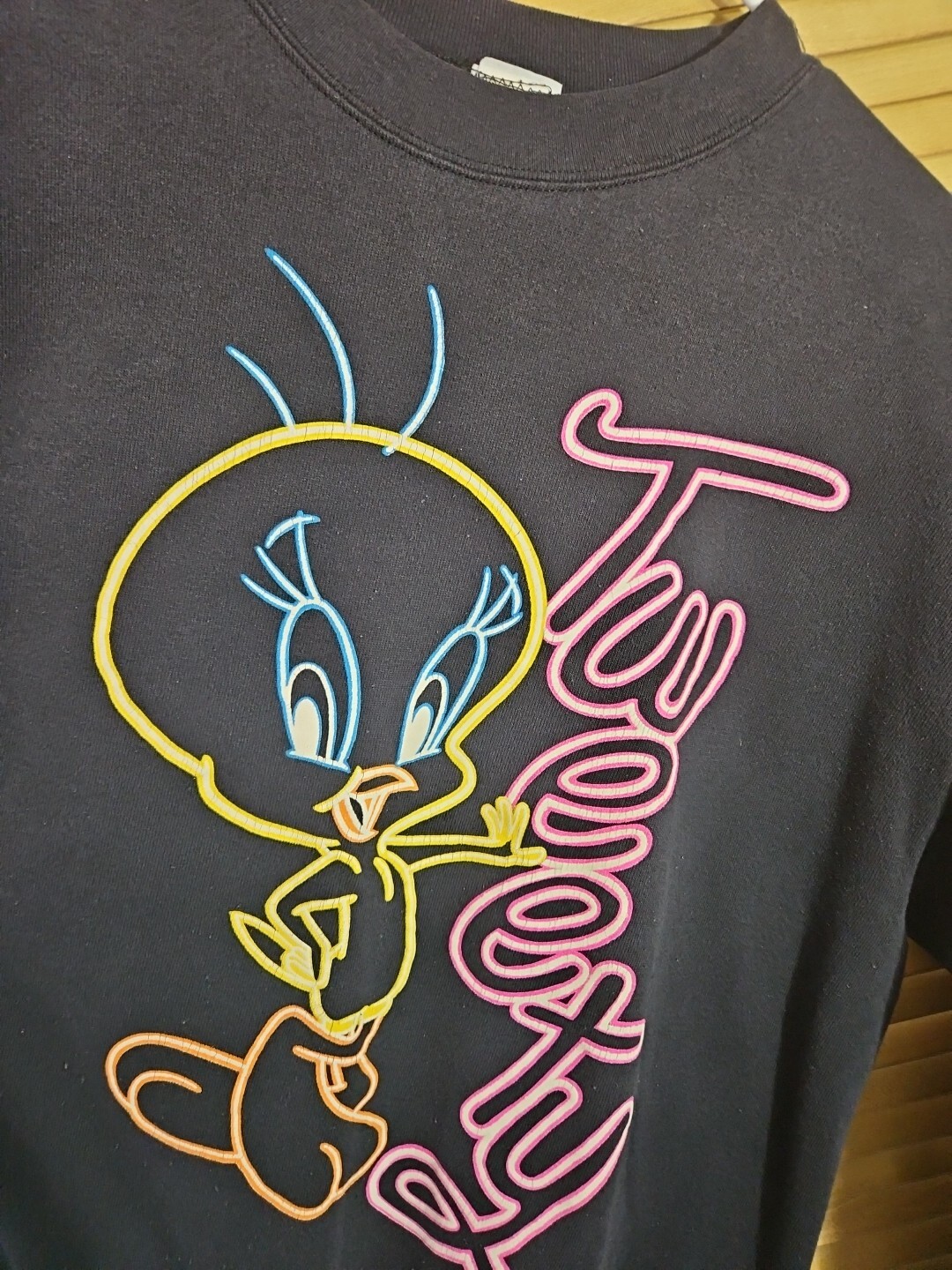 Vintage 90s 1997 Looney Tunes Tweety Bird Neon Crewneck Sweatshirt Mens L Freeze