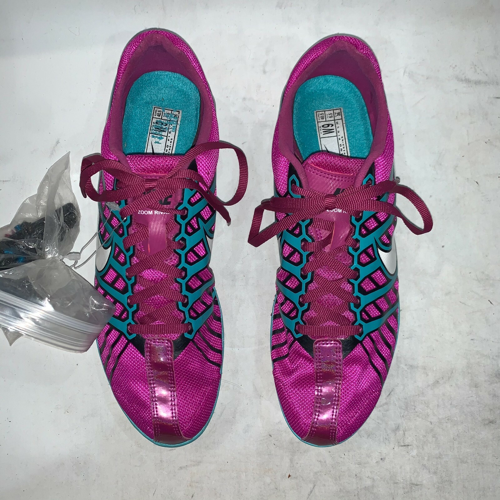 Nike Zoom Rival D Womens Flat Ribbon Lace Track Field Shoes Fuschia Teal Sz US 9