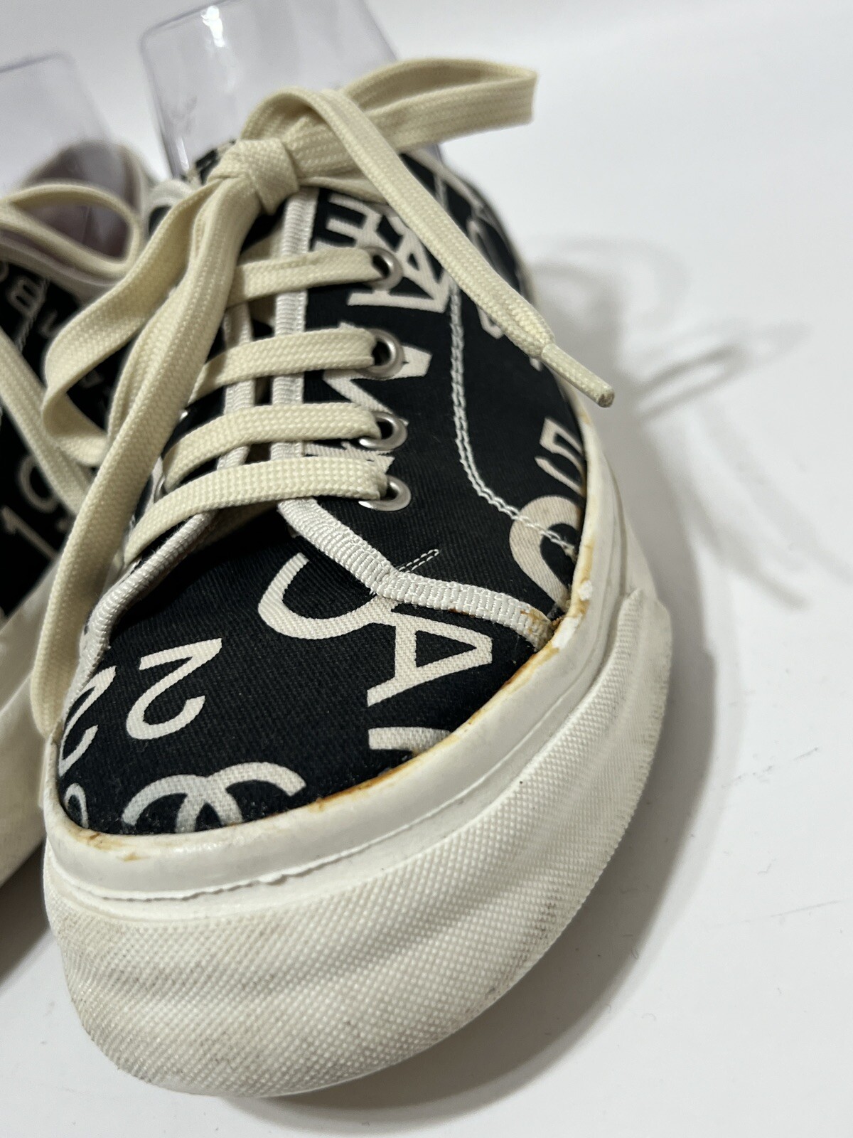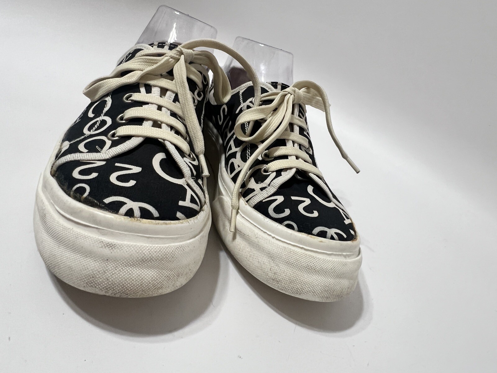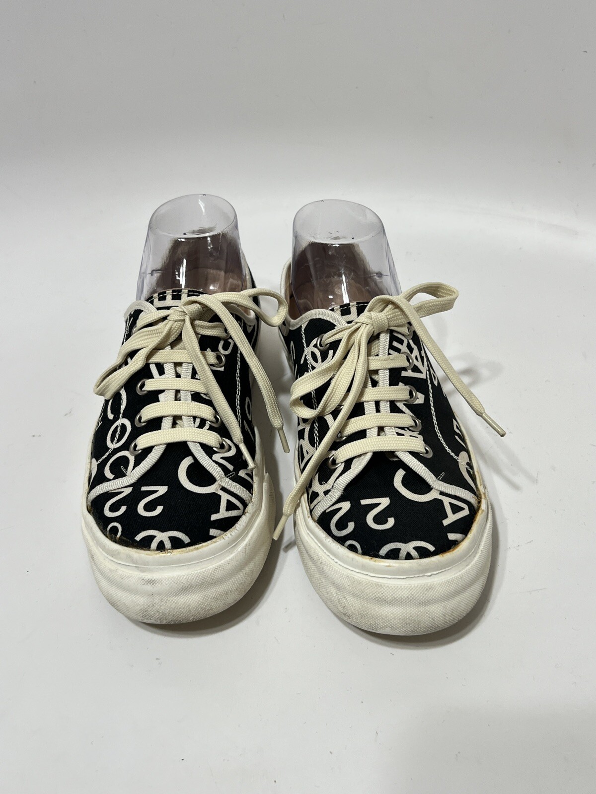 Vtg Chanel Black Coco CC Logo Print Canvas Sneakers 39
