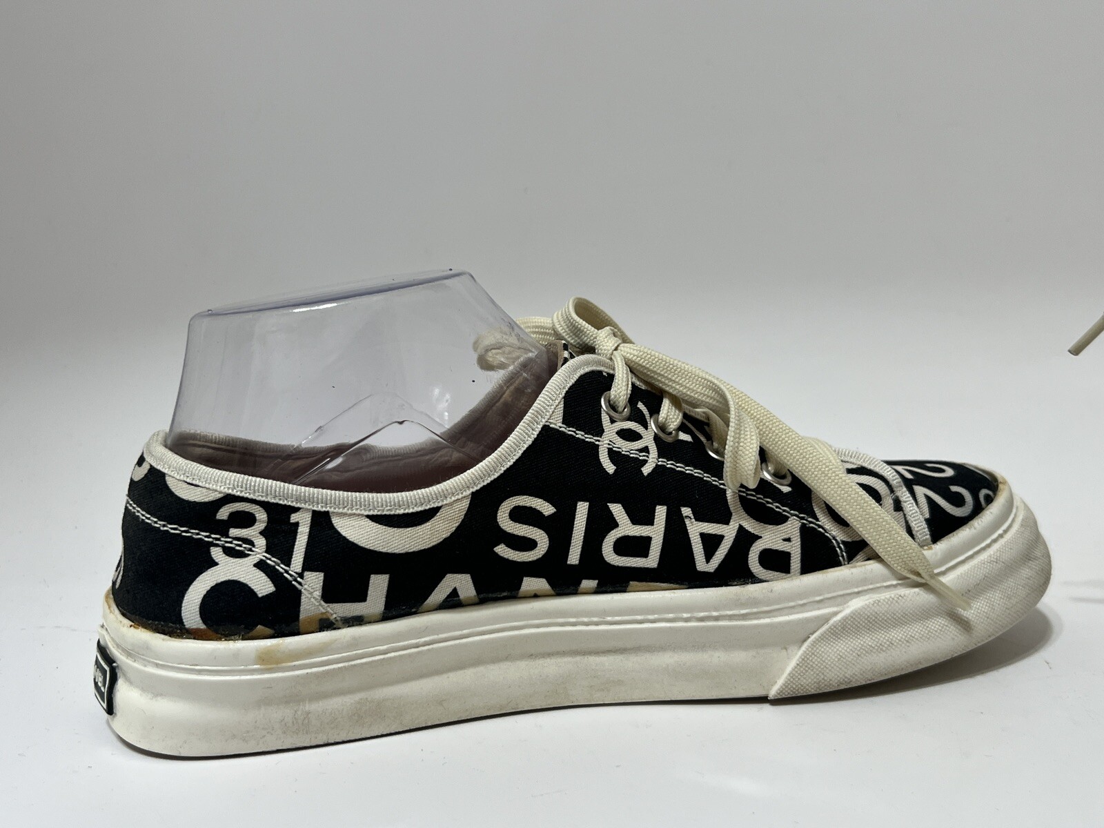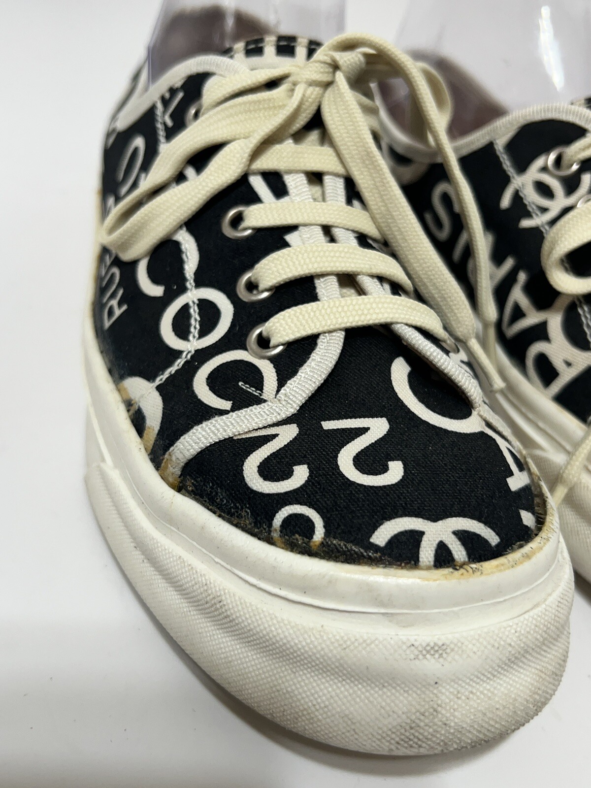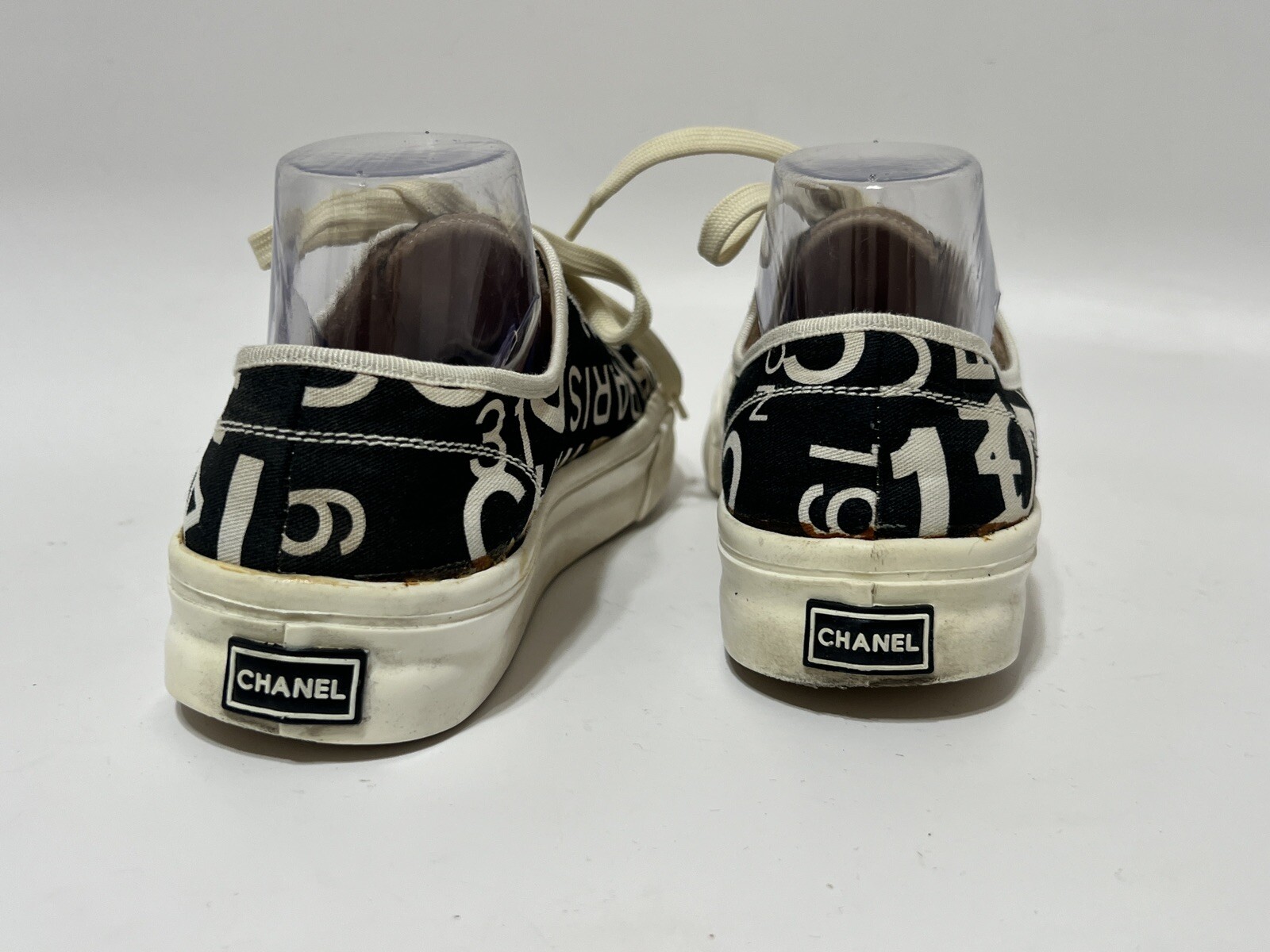 Vtg Chanel Black Coco CC Logo Print Canvas Sneakers 39