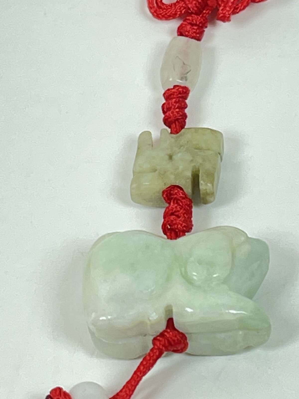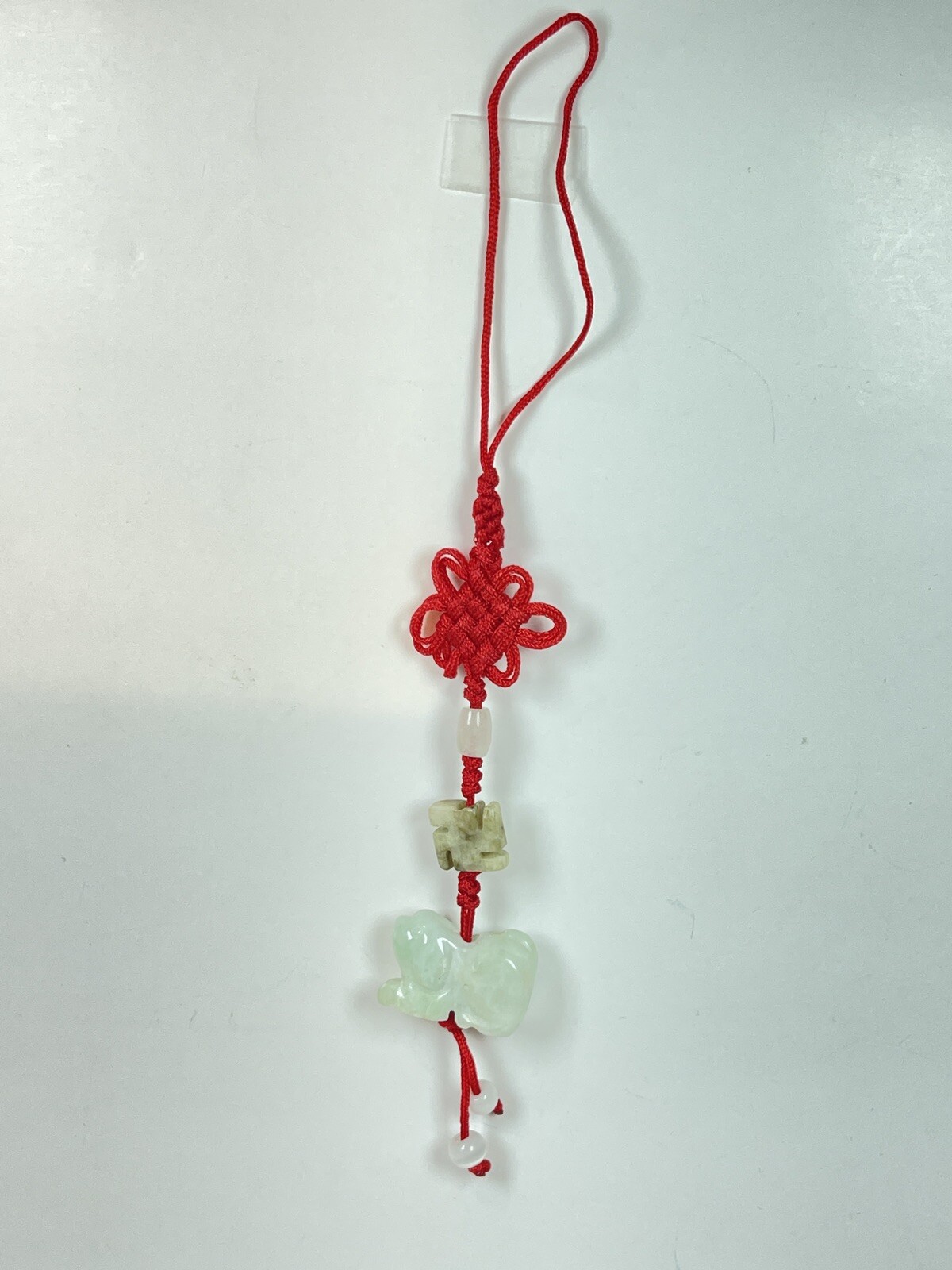 Hand Carved Natural Jade Chinese Zodiac Dog Pendant Knotted CellPhone Car Charm
