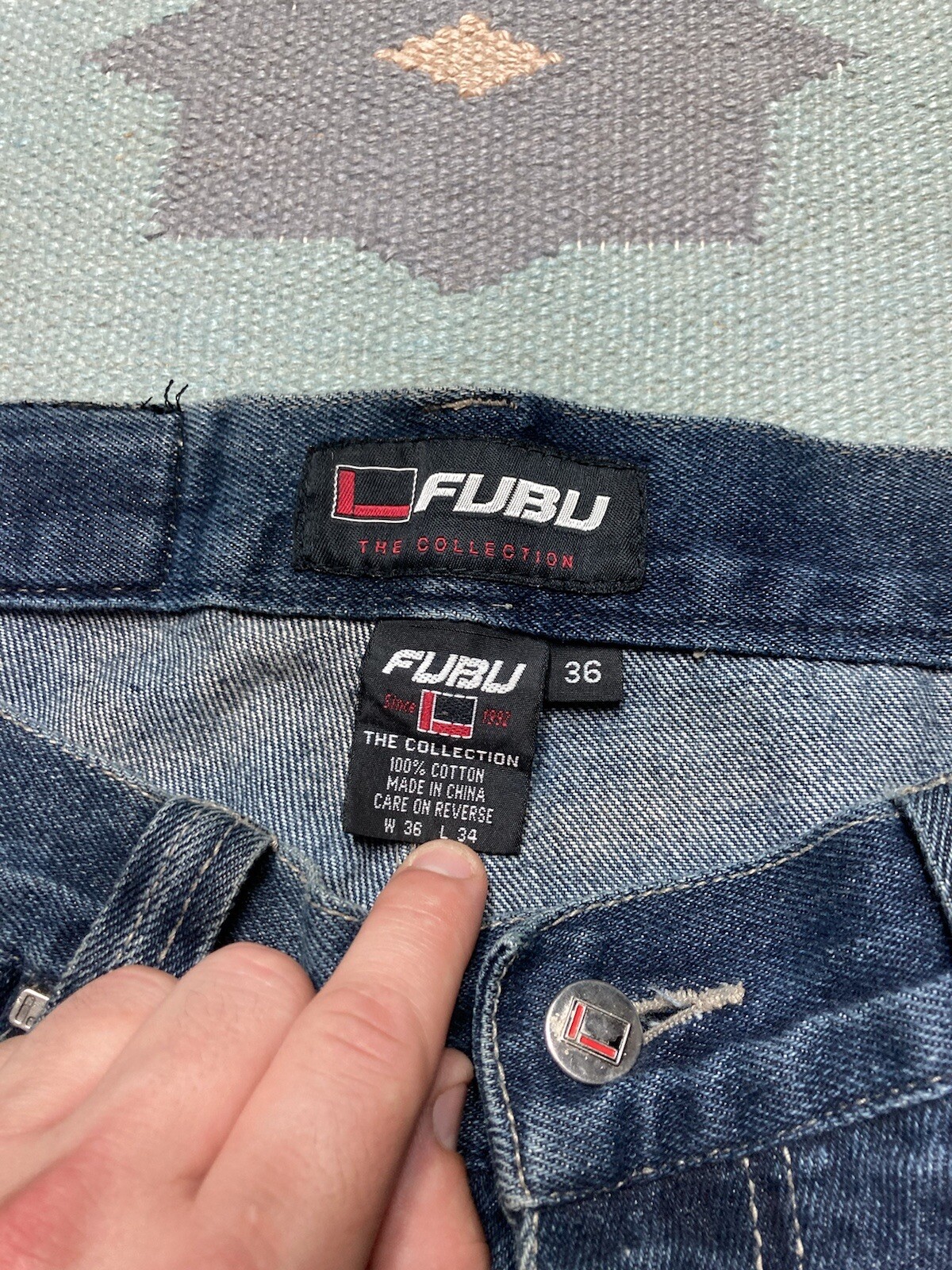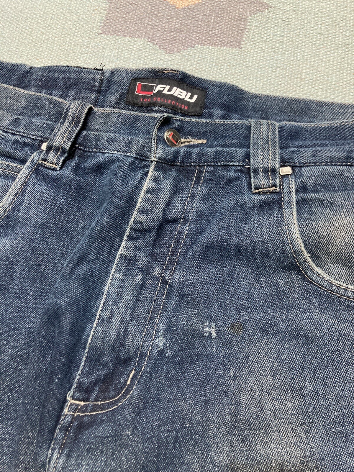 Vintage y2k baggy jeans fubu wide leg skater hip hop paint grunge 36x33