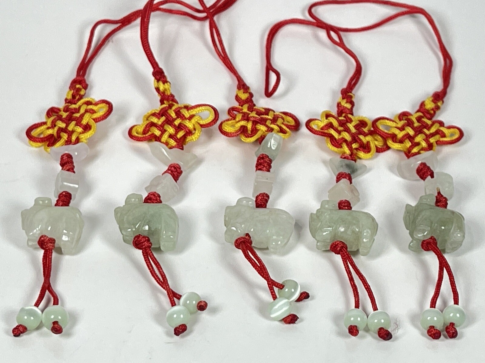 5PC Hand Carved Natural Jade Chinese Zodiac Boar Pendant Knotted CellPhone Charm