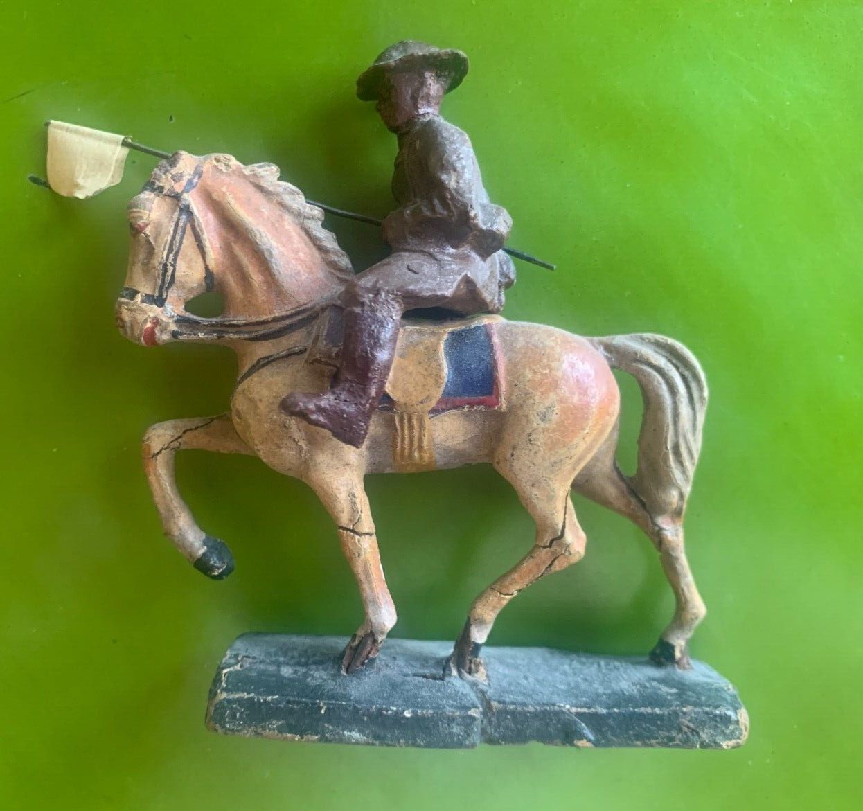 как выглядит World War I Elastolin British Soldier on Horse with Flag фото
