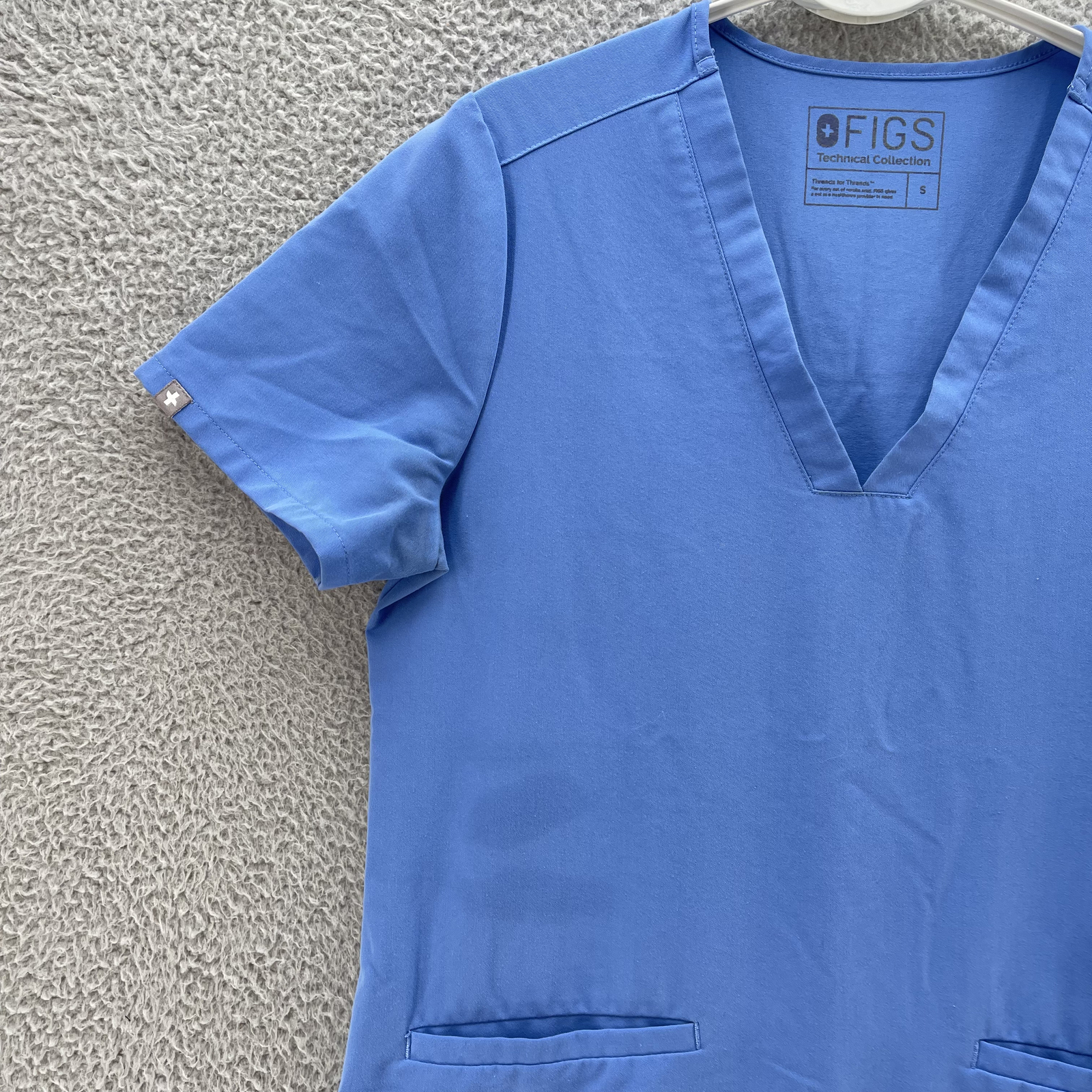 как выглядит Figs Casma Scrub Top Women Small Blue Two Pockets V-Neck FW1100 PO 1290 фото
