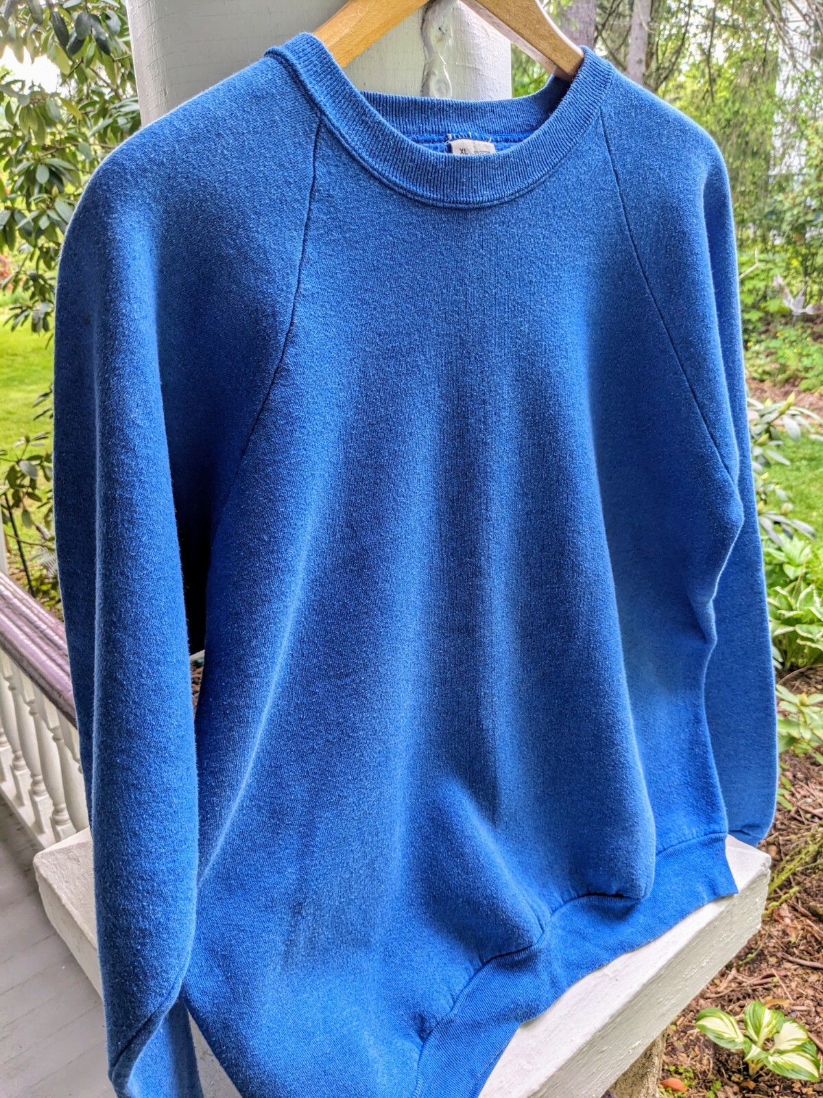 как выглядит Vintage 80s-90s Fruit Of The Loom Blank Sweatshirt XL Blue Long Sleeve фото