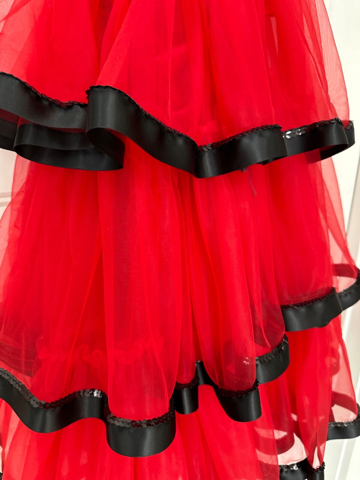 Pretty red and black girls' dance dress; Size Large Child; Art Stone brand