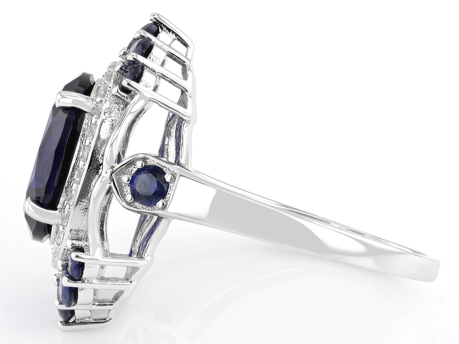 как выглядит Dazzling Blue Oval Shape Lab-Created Sapphire Cluster Flower Design Wedding Ring фото