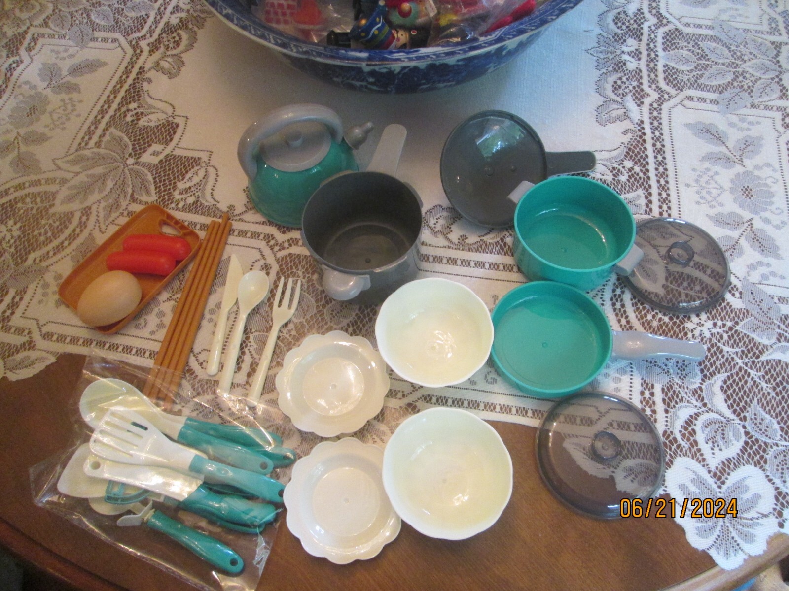 Kids Pretend Kitchen/ Cooking Play Set Pots, Dishes, Utensils , etc. Small size