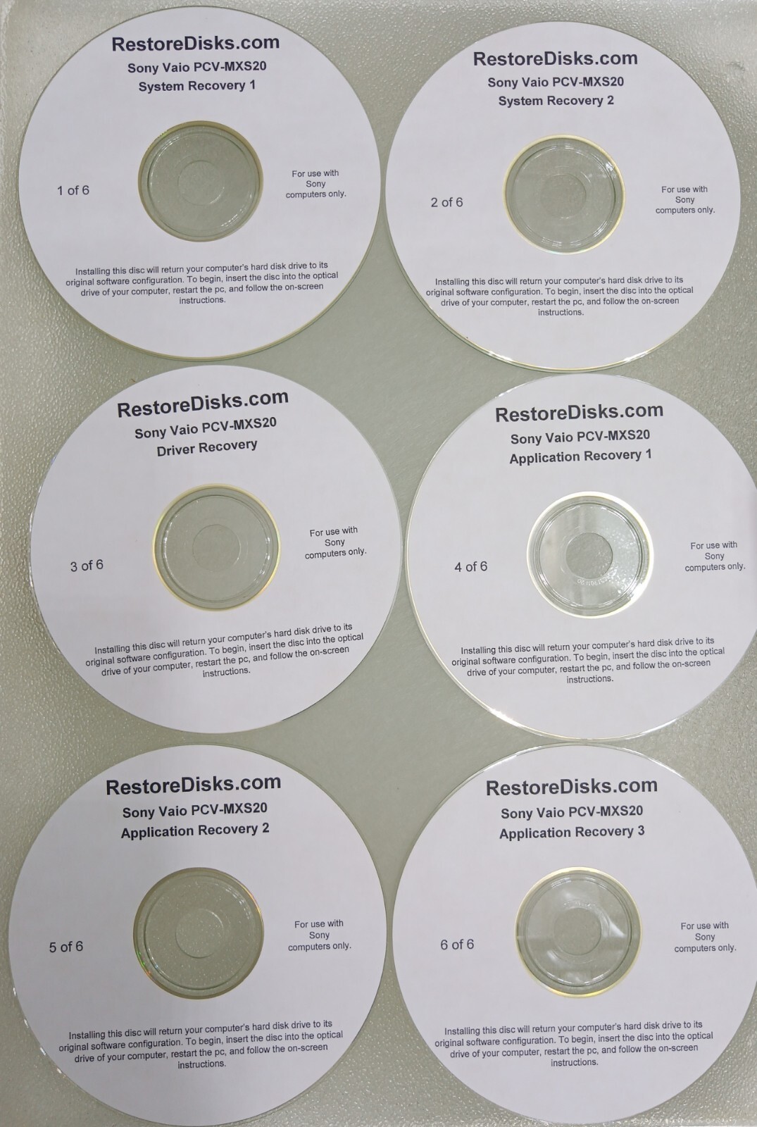 как выглядит SONY PCV-MXS20 SYSTEM ,DRIVER AND APPLICATION RECOVERY DISCS фото
