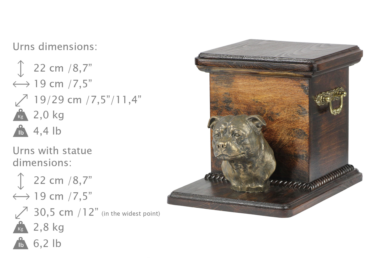 Staffordshire Bull Terrier, Staffy I - urn for dog ashes with a statuette, elega