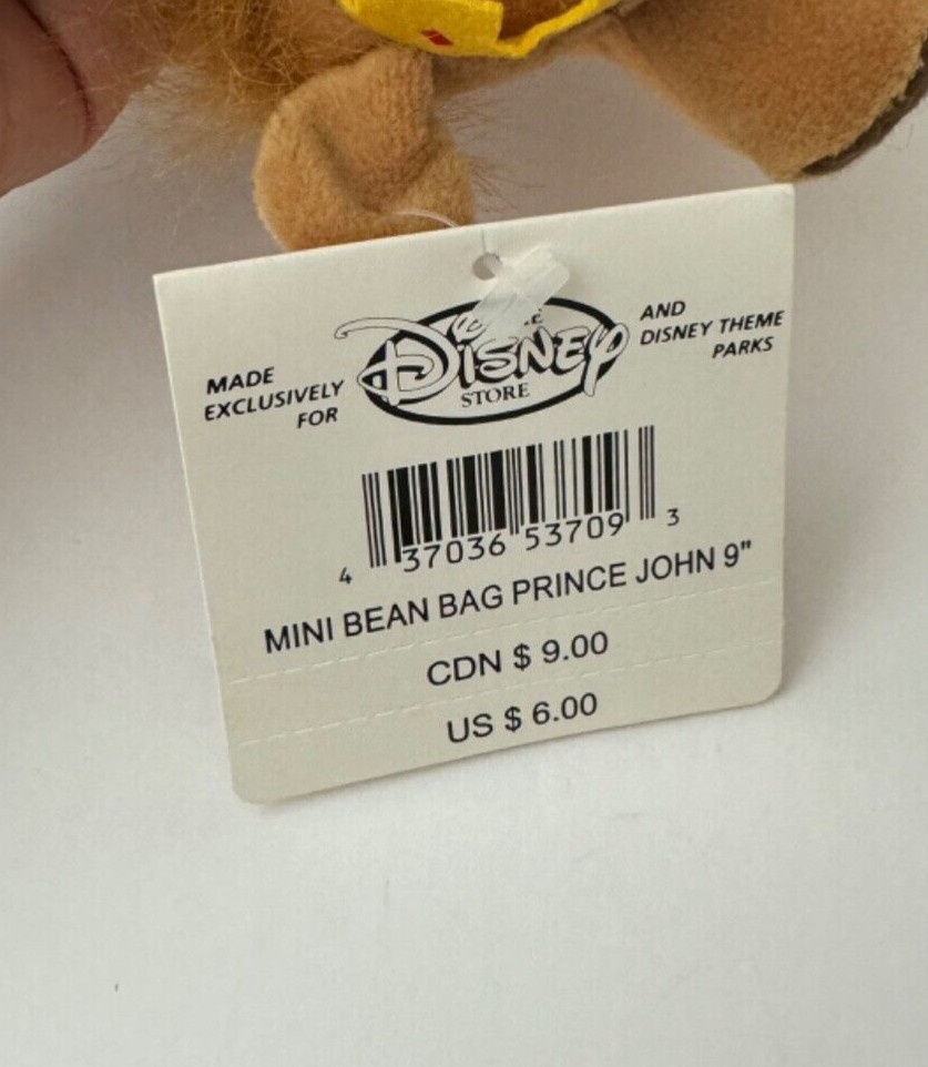 Disney Store Mini Bean Bag Plush Prince John Robin Hood 9 New W/ Tag 143