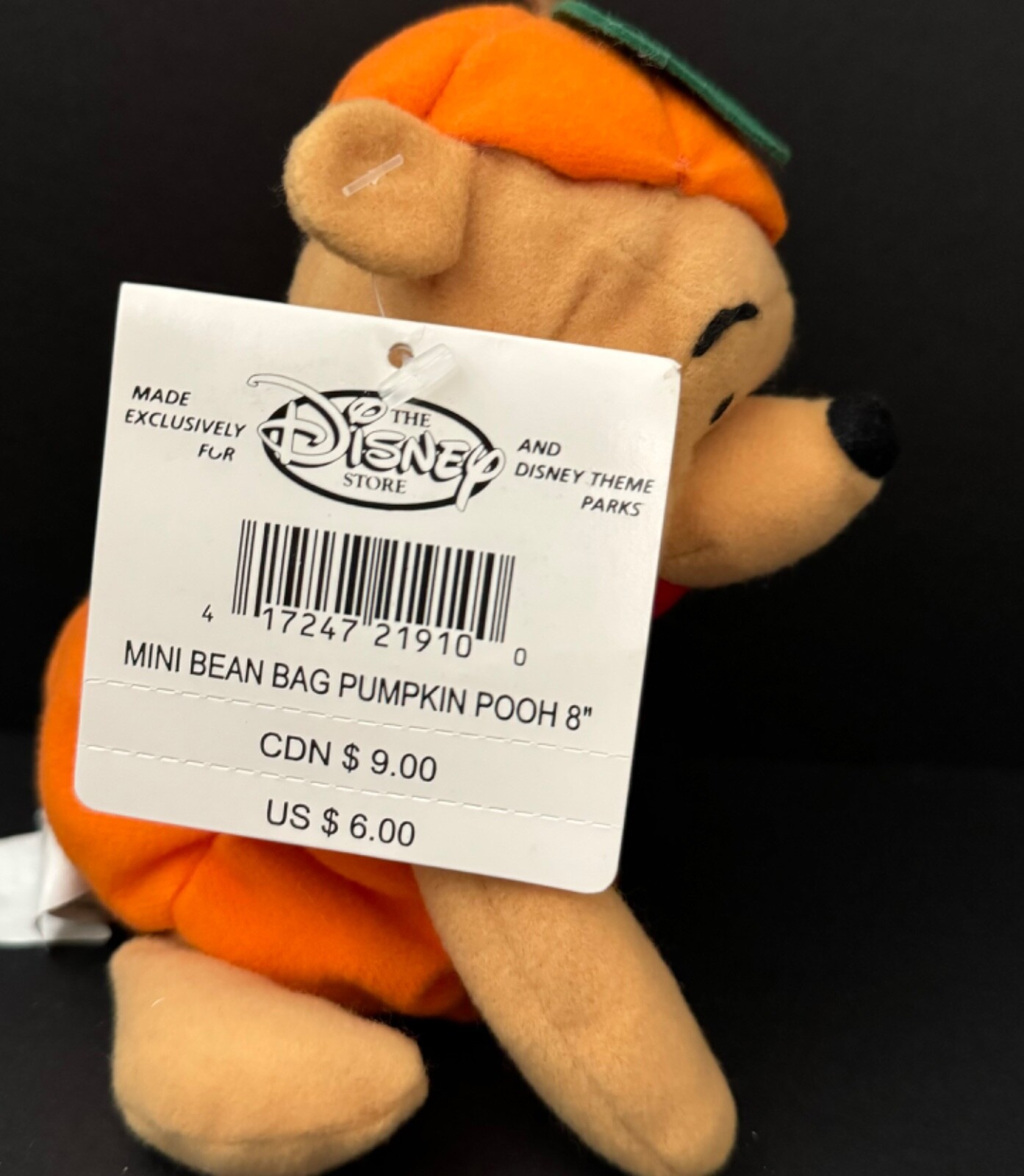 Disney Store Mini Bean Bag Plush Pumpkin Winnie the Pooh 8 New W/ Tag D107