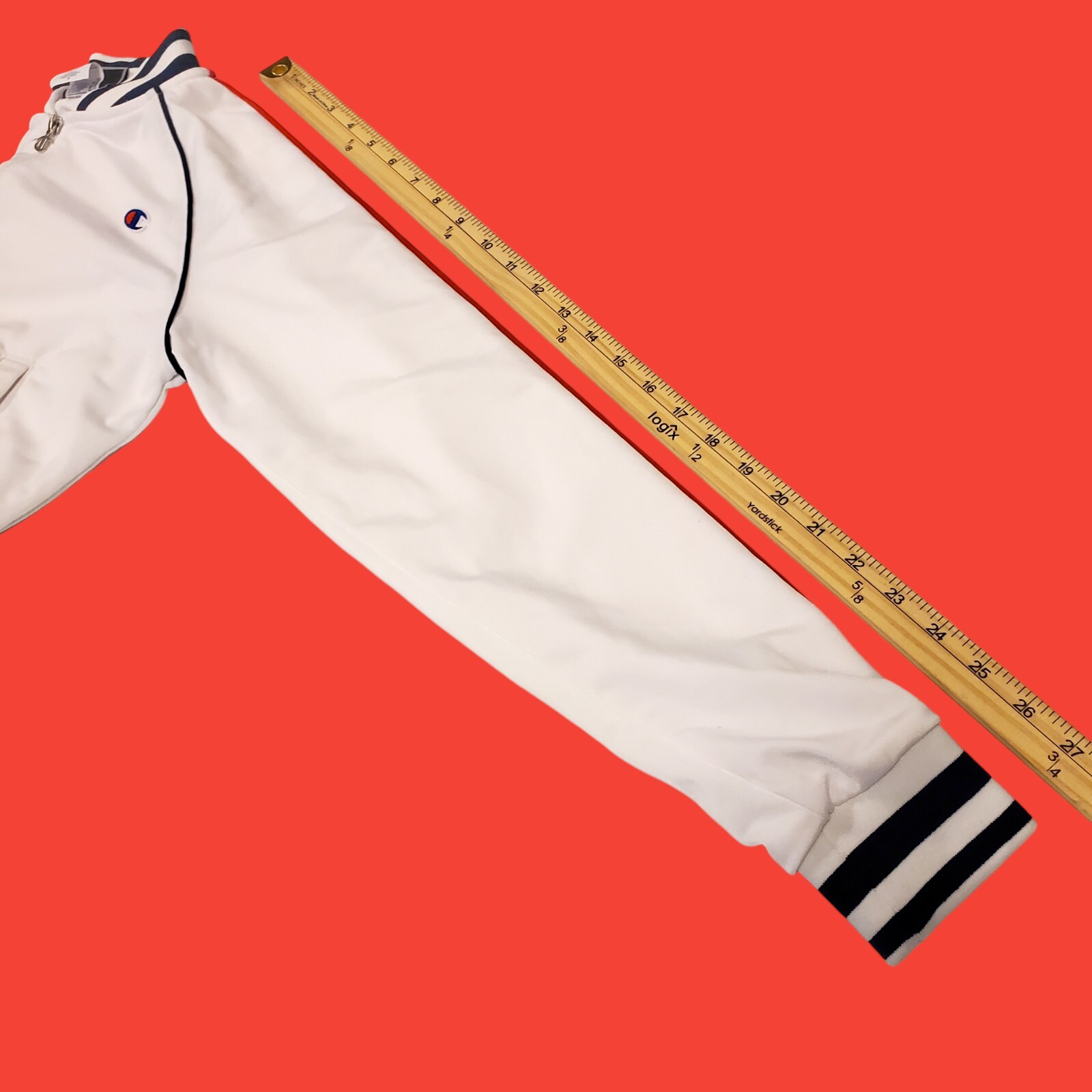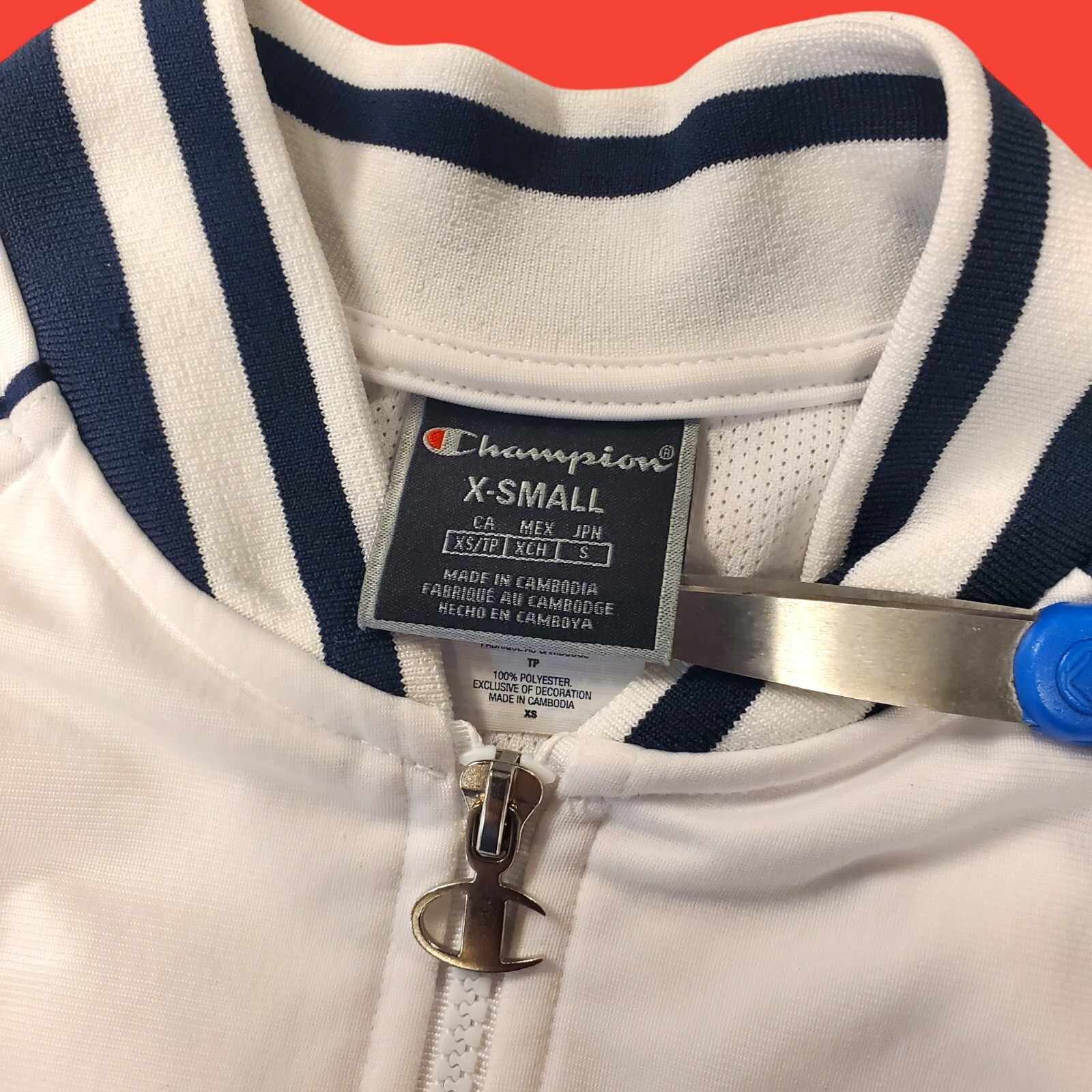 как выглядит CHAMPION Jacket Womens XS White Striped Cropped Full Zip Spell Out Athleisure фото