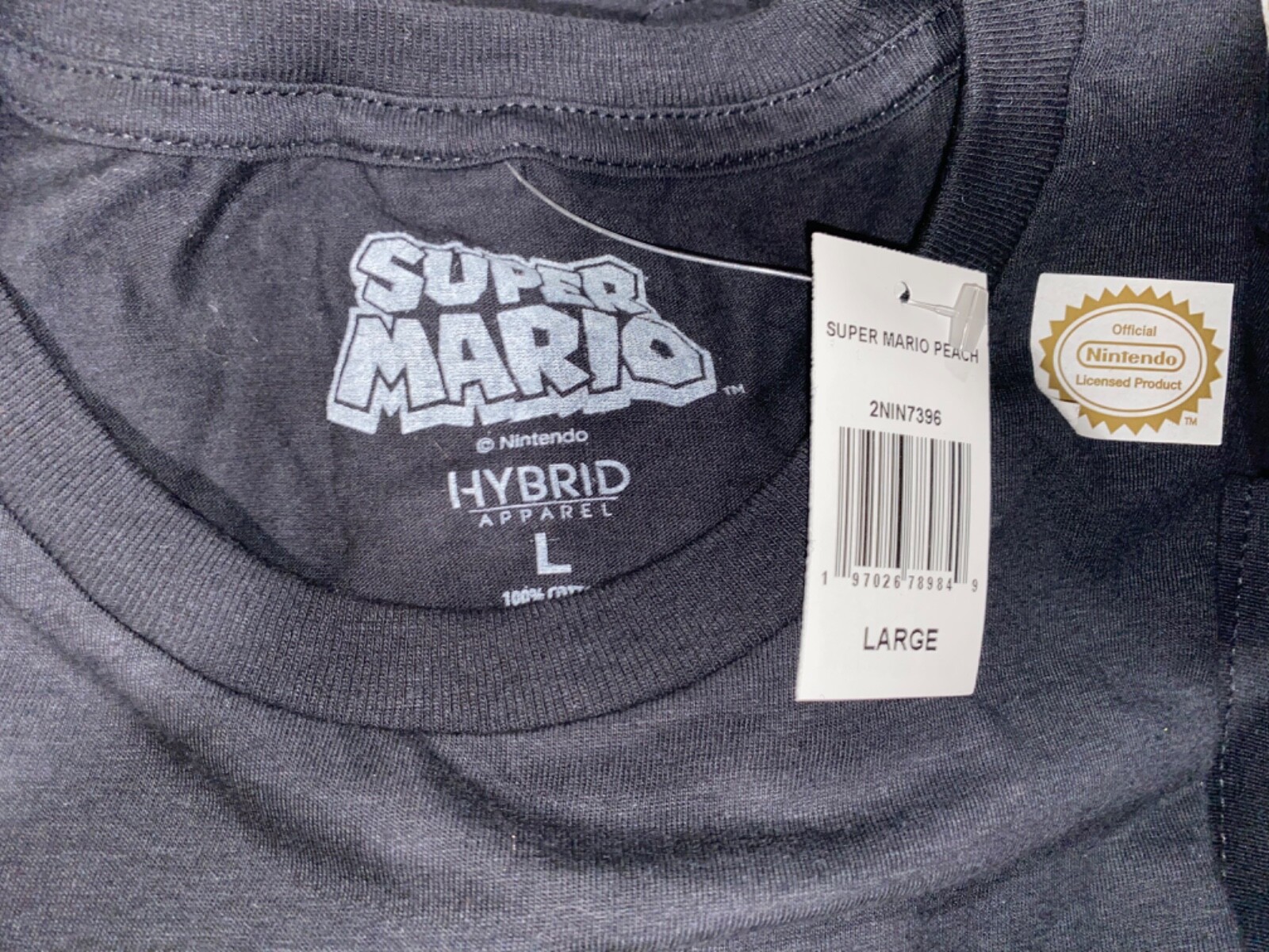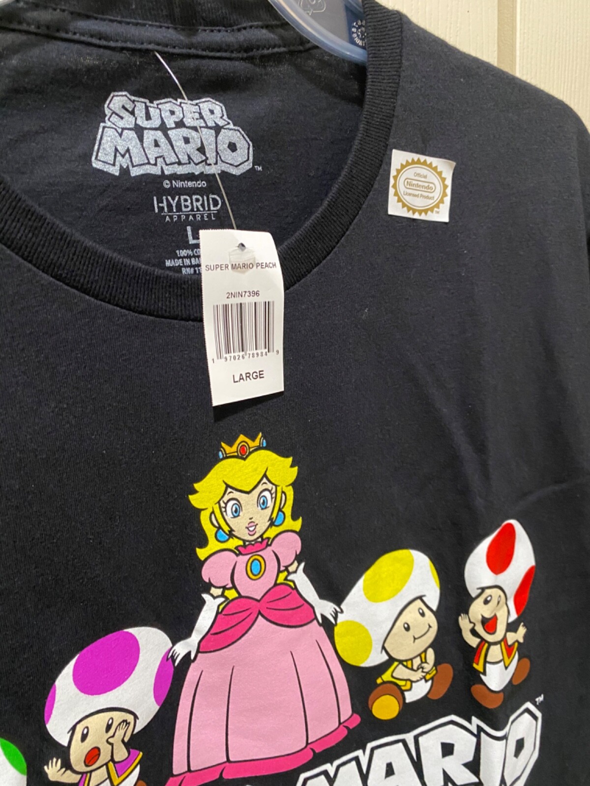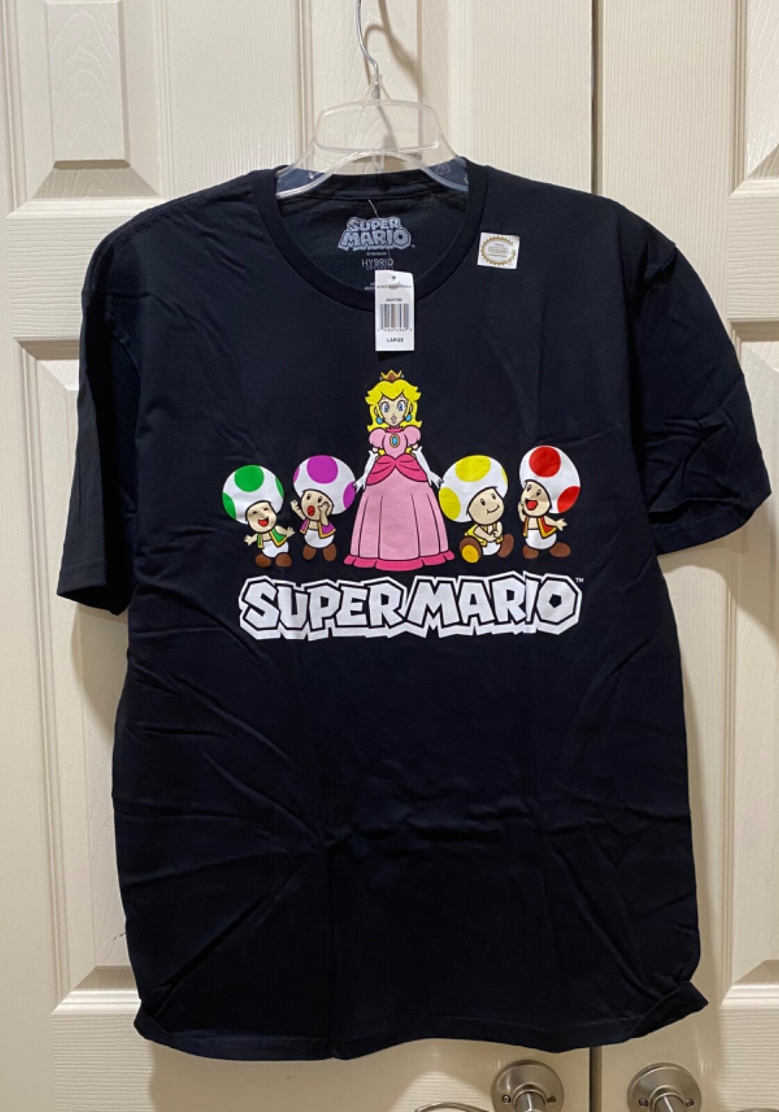 как выглядит NWT - Super Mario Bros. Princess Peach Classic Group T-Shirt - Black - Large фото