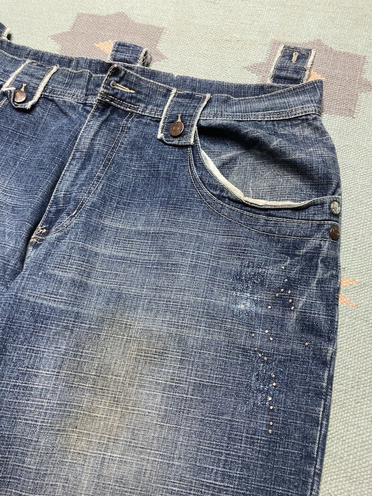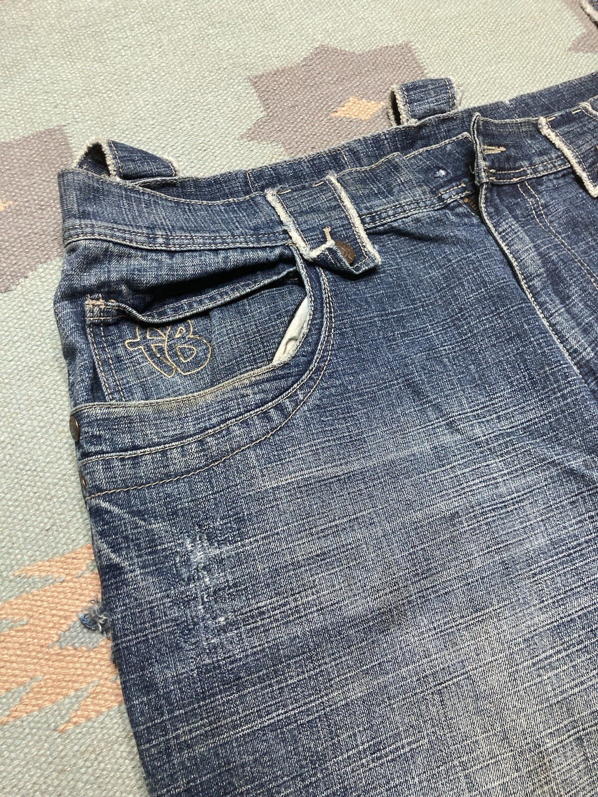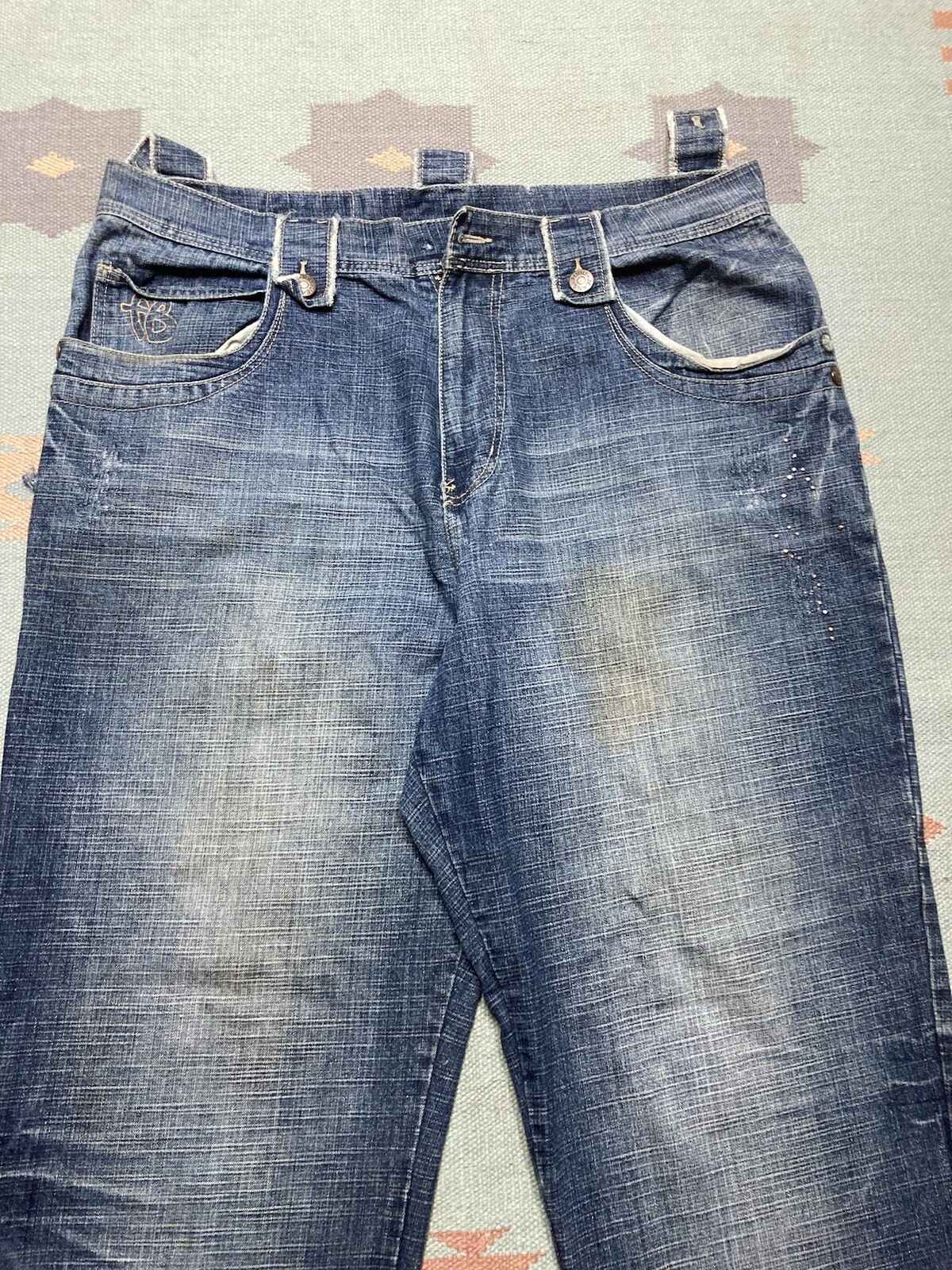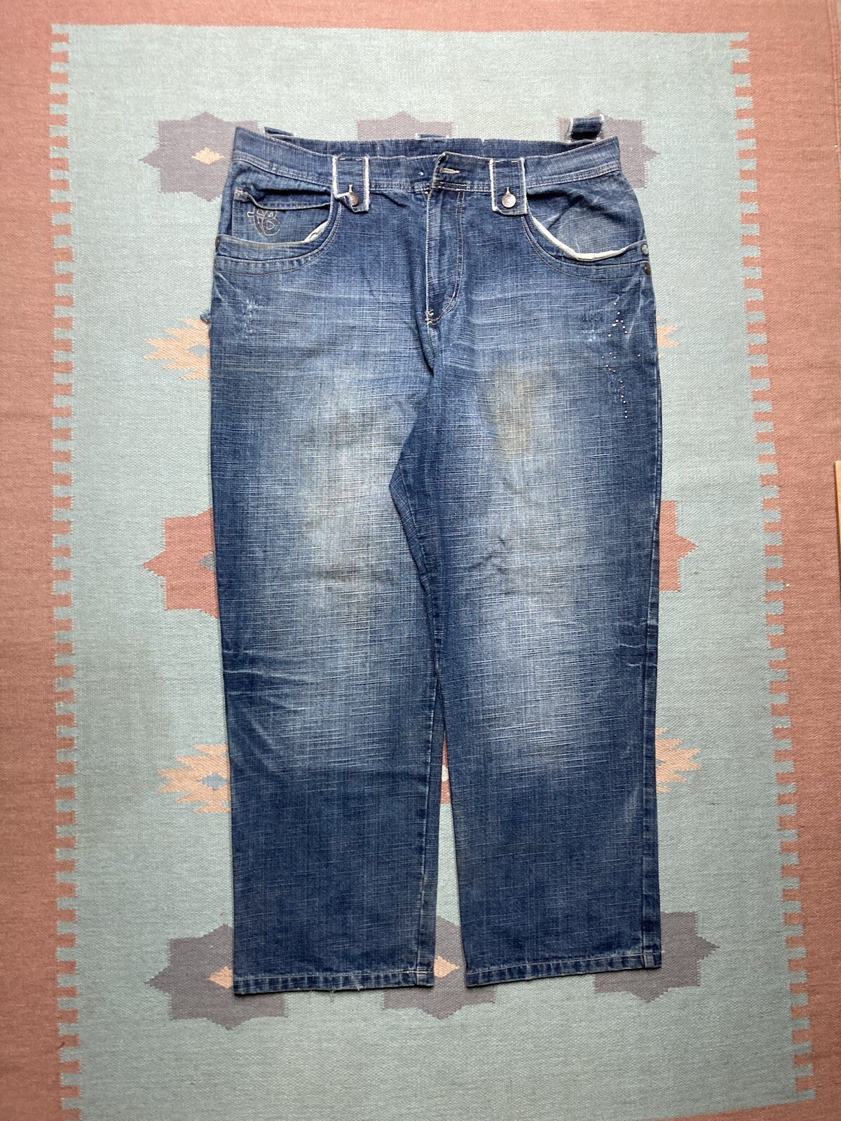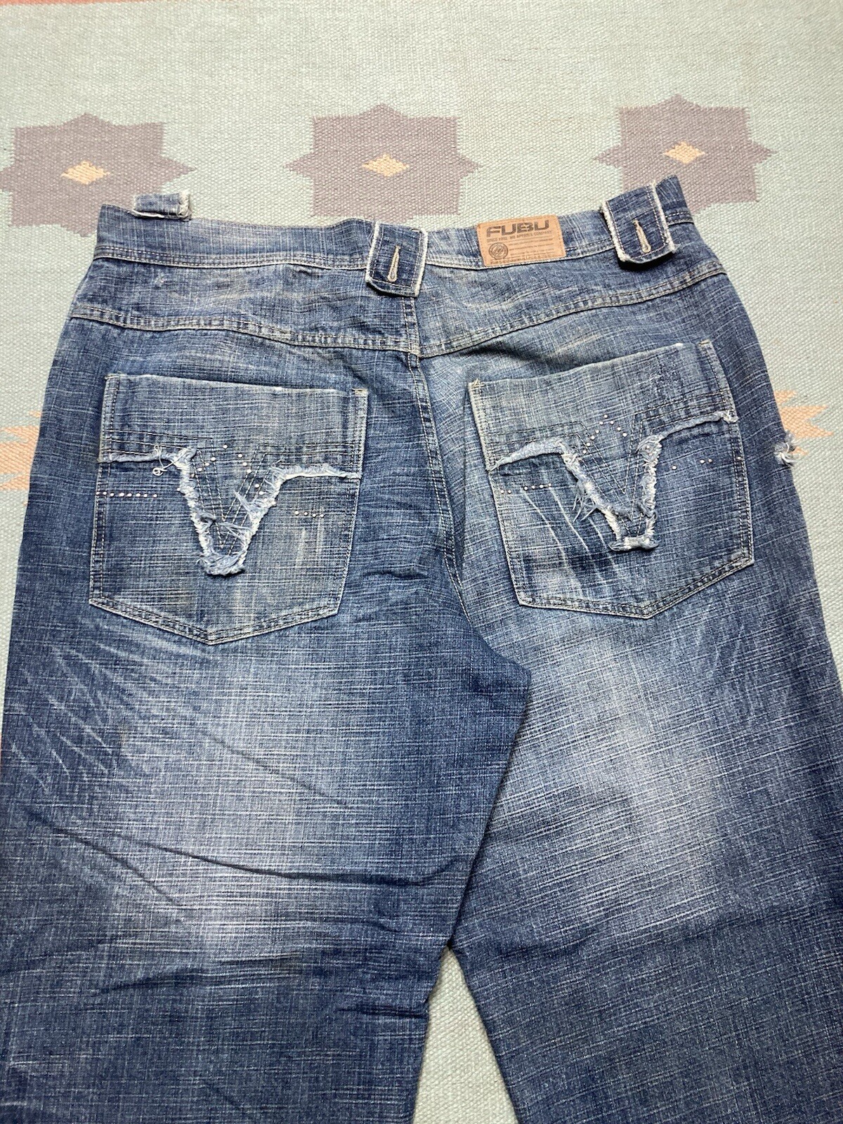 Vintage y2k baggy jeans fubu wide leg pipes faded grunge skater hip hop 44x33