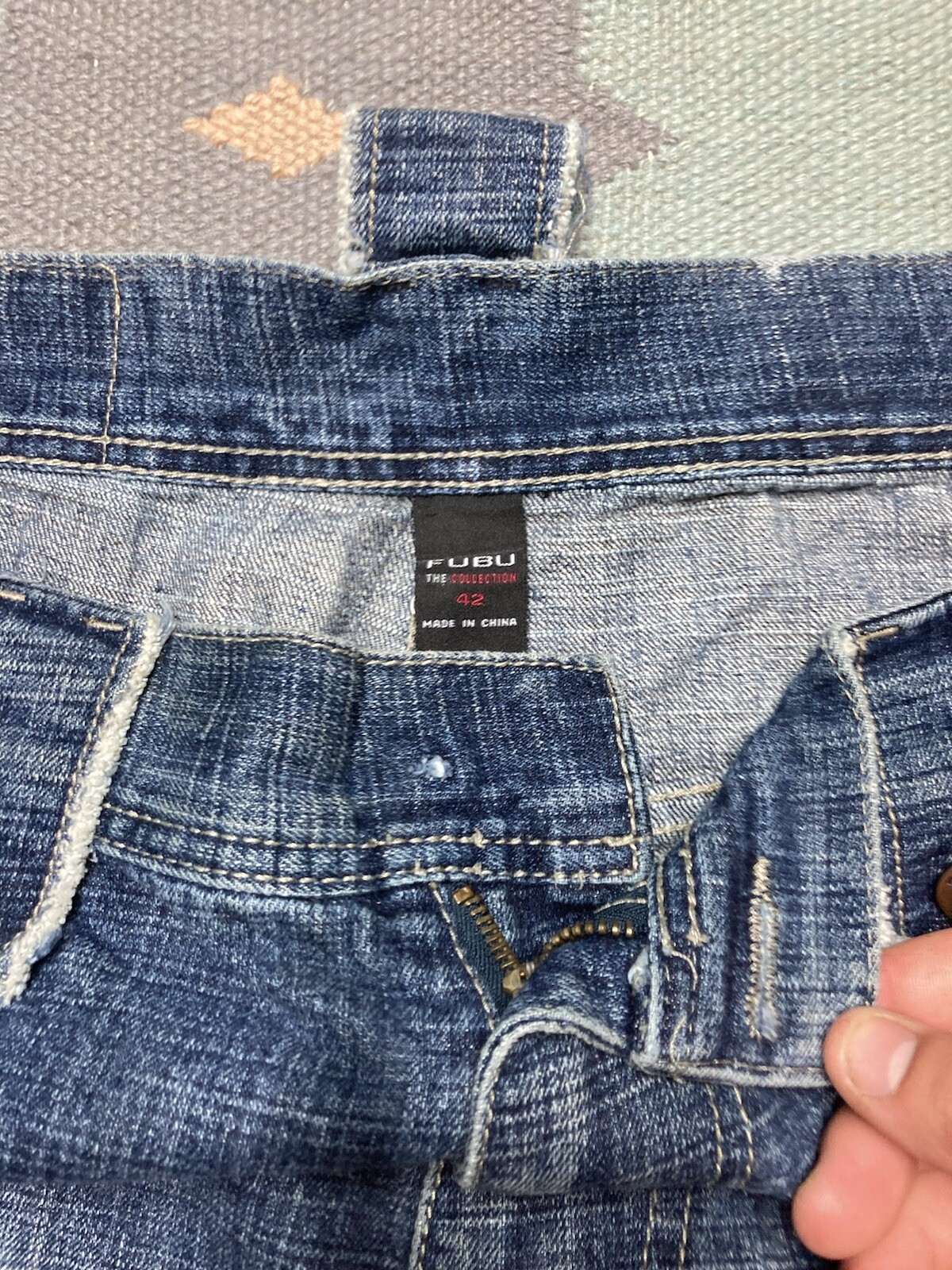 как выглядит Vintage y2k baggy jeans fubu wide leg pipes faded grunge skater hip hop 44x33 фото
