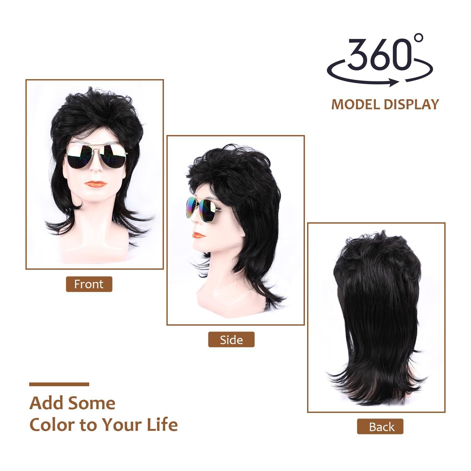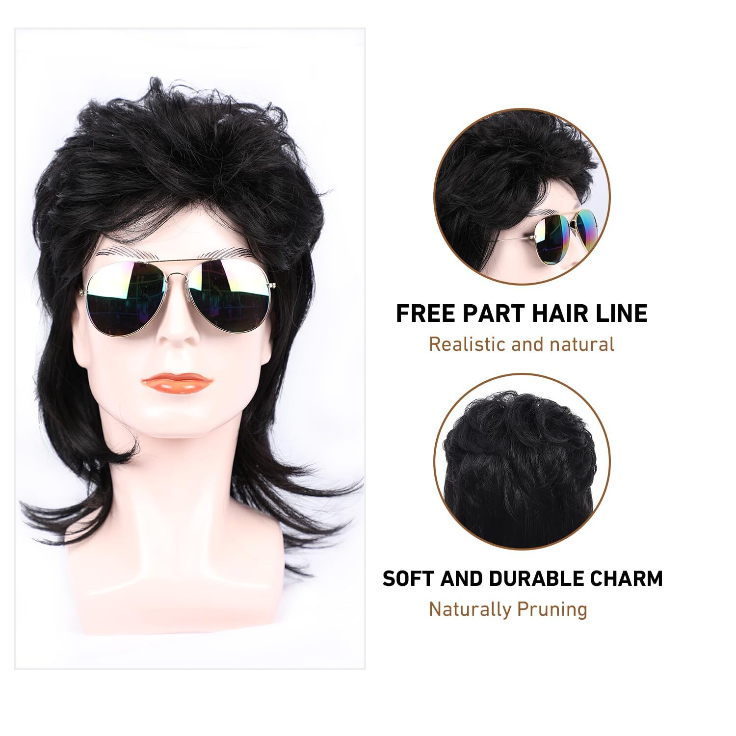 Mullet Wigs for Men 70s and 80s Costumes Fancy Party Accessory Cosplay Wig Black