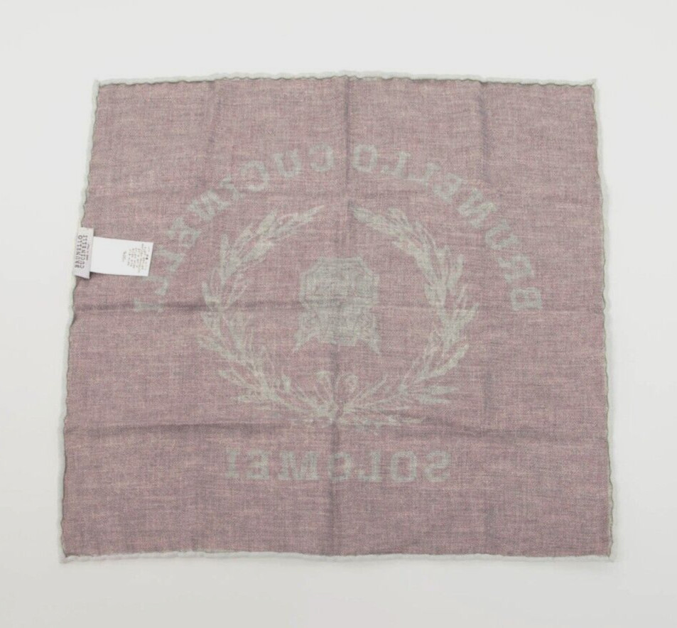 NWT Brunello Cucinelli Men's 100 Silk Logo Brand Graphic Print Pocket Sq A242