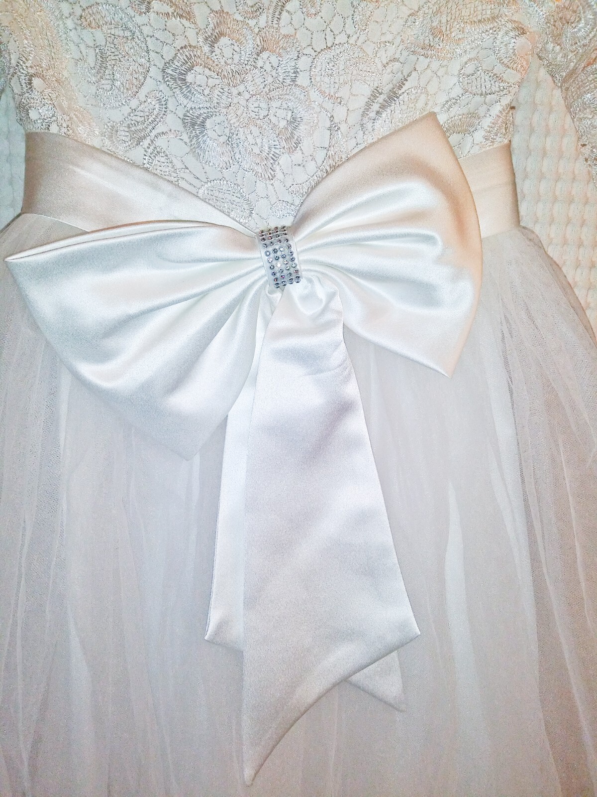 как выглядит Flower Girl Bridesmaid Dress Party Rhinestones Lace Bow Wedding Princess 8-9Y фото