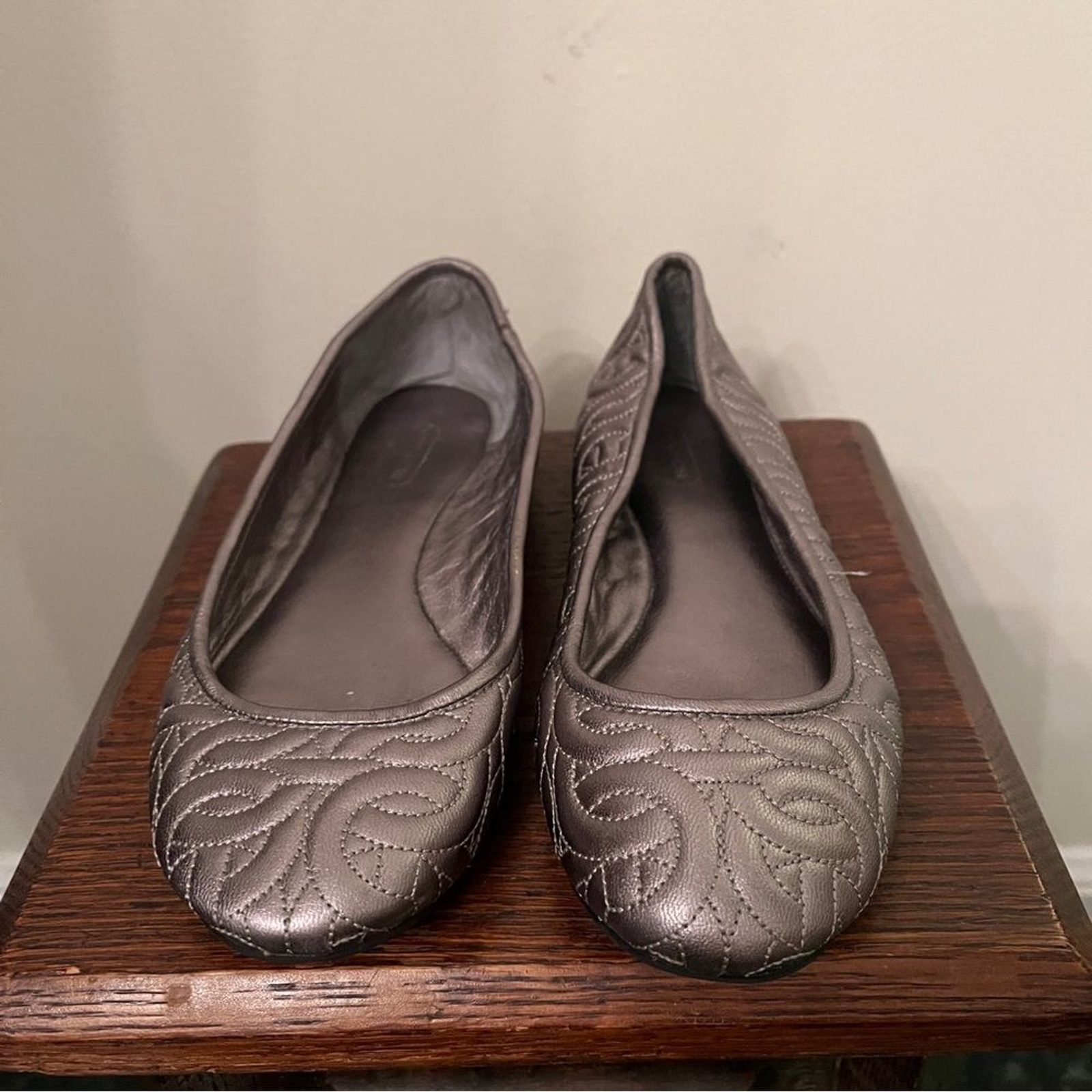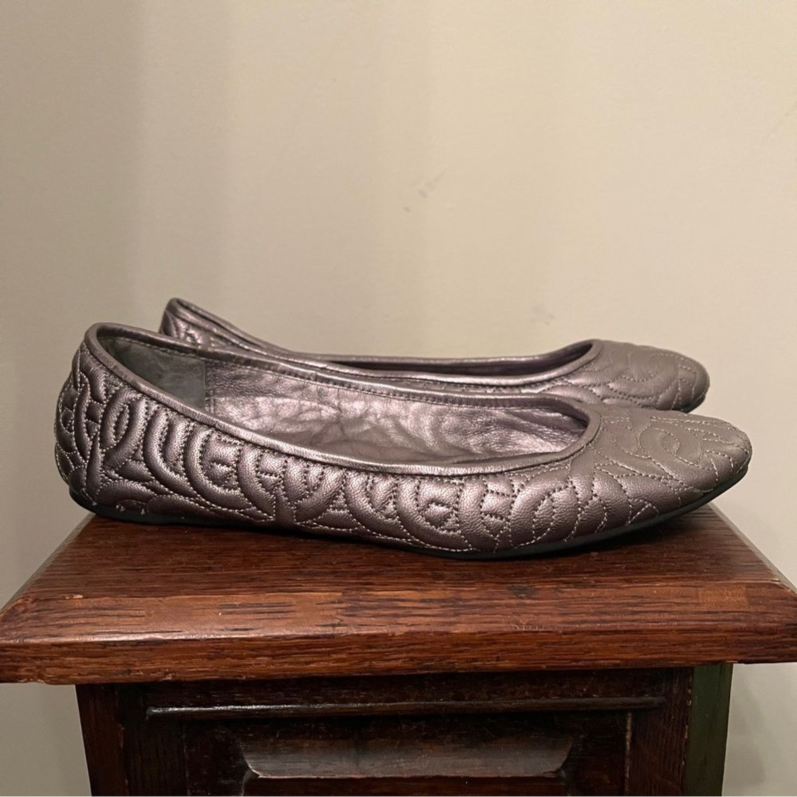 как выглядит Coach Silver Metallic Quilted Leather Ballet Flats фото