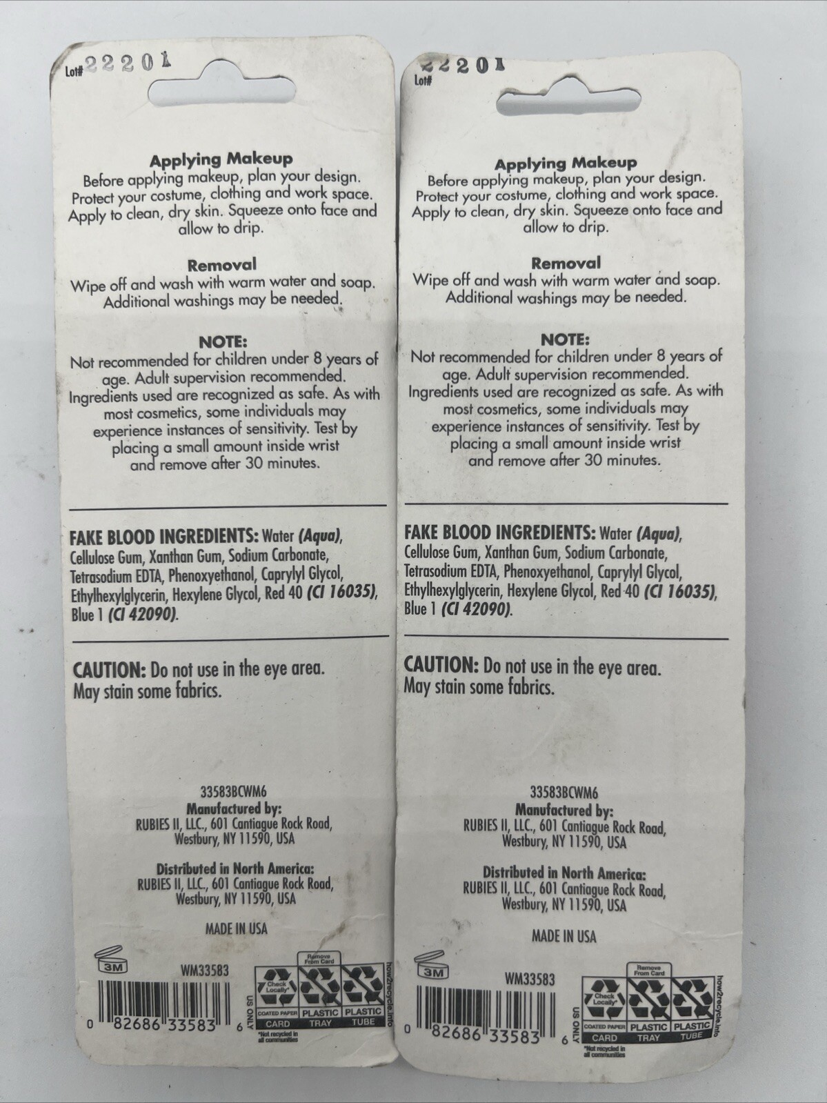 New Lot of 2 Rubies Vampire Blood Fake Blood Halloween 2oz Total Age 8 FreeS H