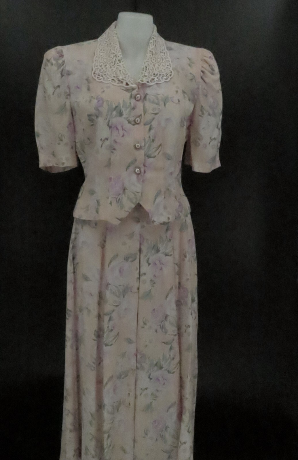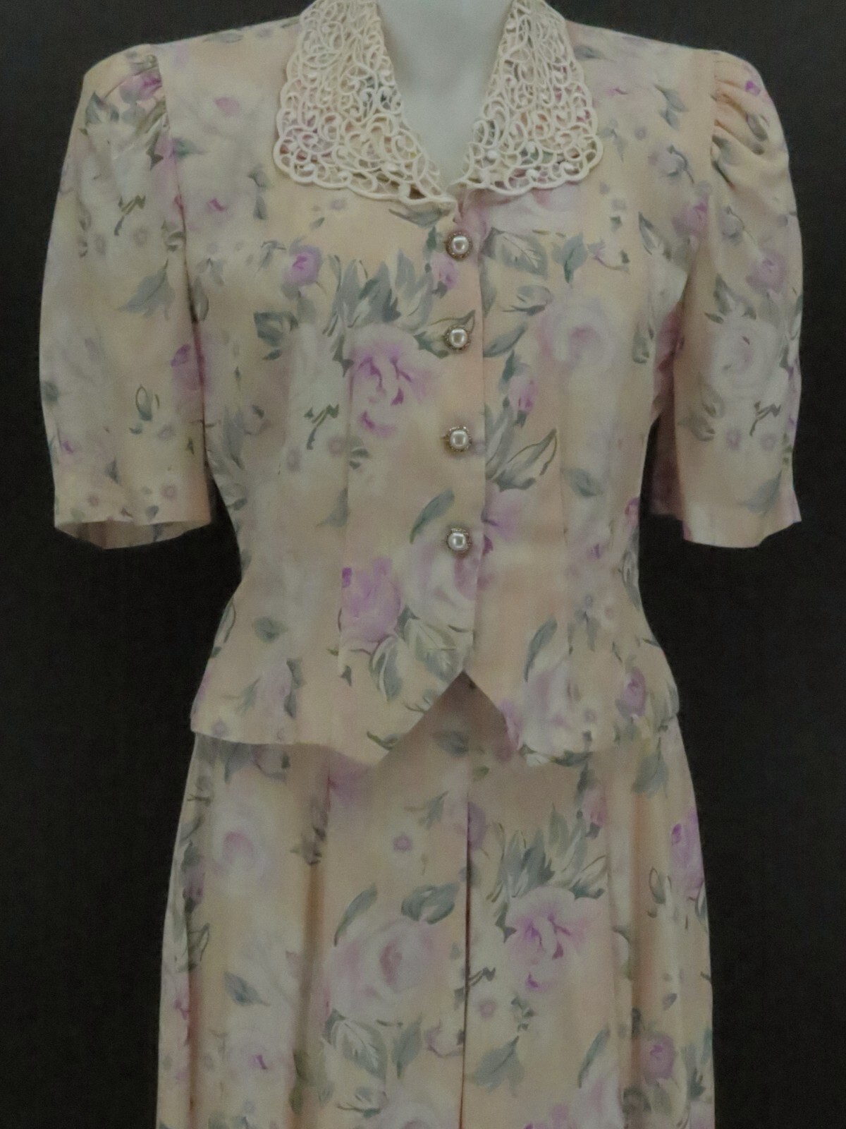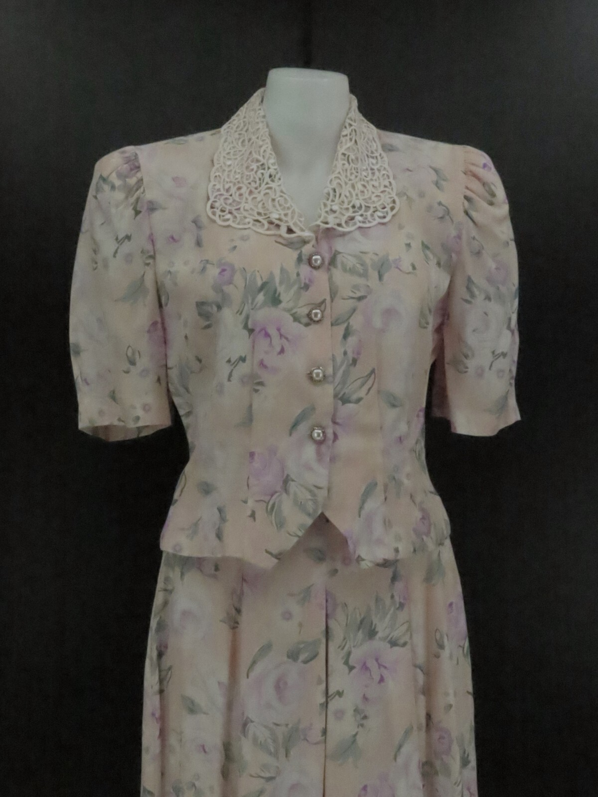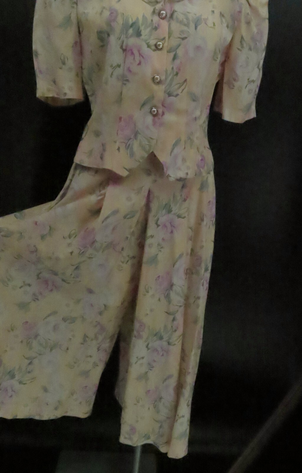 Vtg 90s Floral Rayon Gaucho Capri Pants Set Size 8 Cottagcore SL Fashions