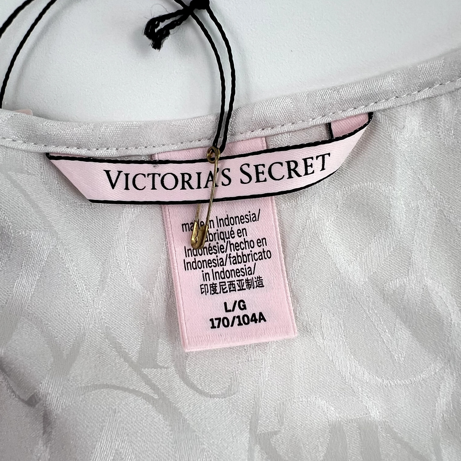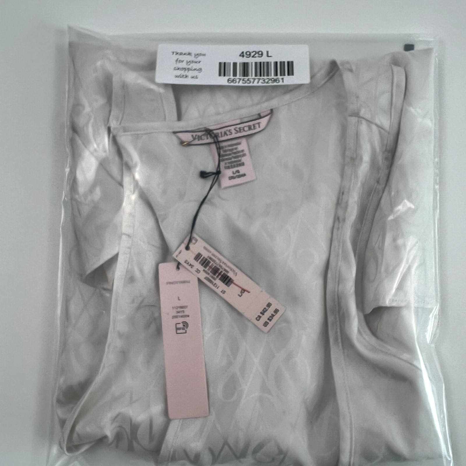 как выглядит Victoria s Secret Satin Racerback Tank Top Sleepwear w/ Logo White Size L NWT фото