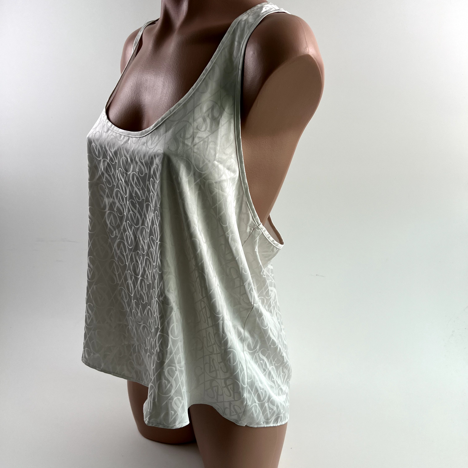 Victoria s Secret Satin Racerback Tank Top Sleepwear w/ Logo White Size L NWT