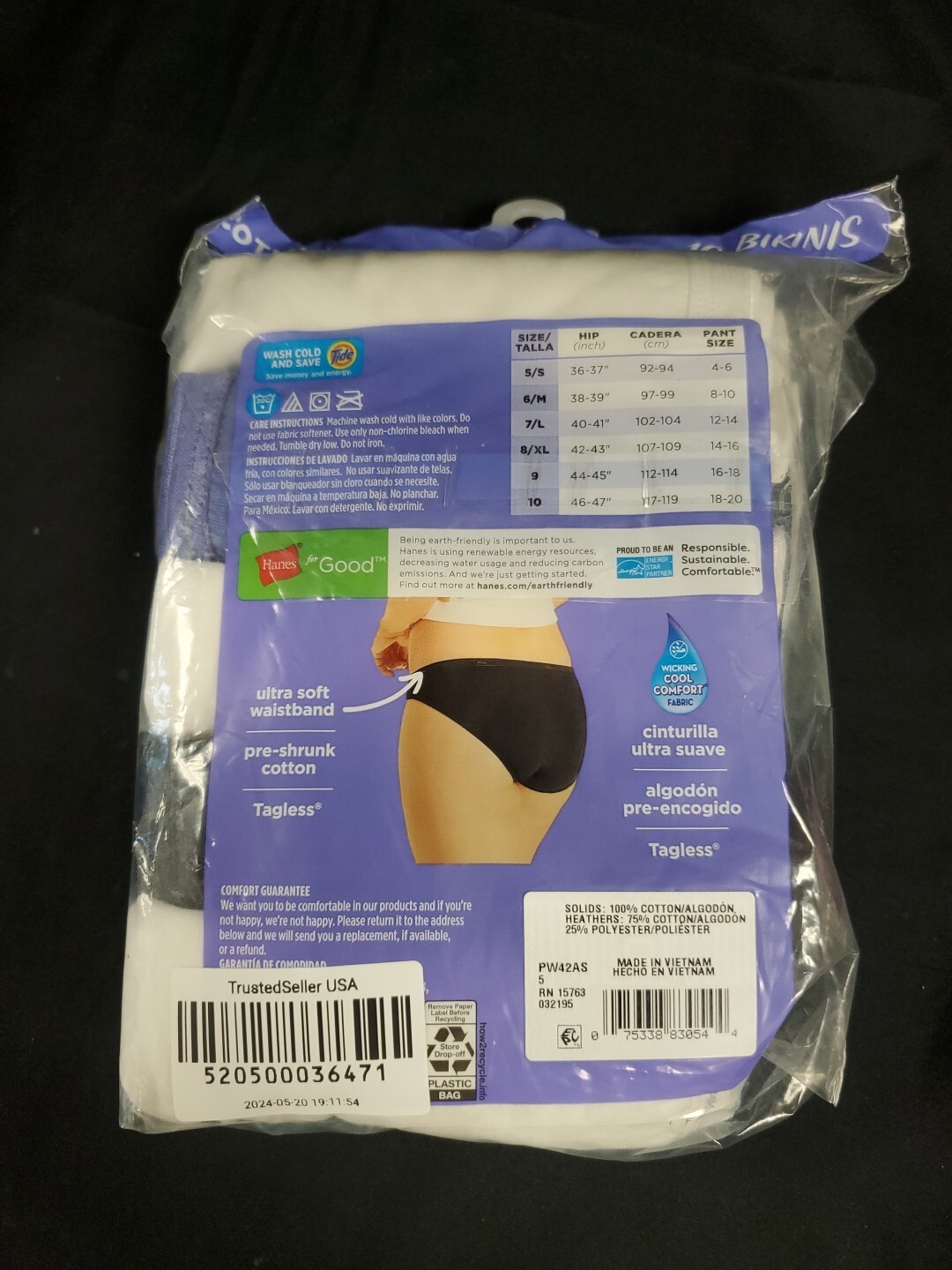 Hanes Women's Cotton Tagless Bikini Panties 10-Pack Ultra Soft Waistband Sz. 5