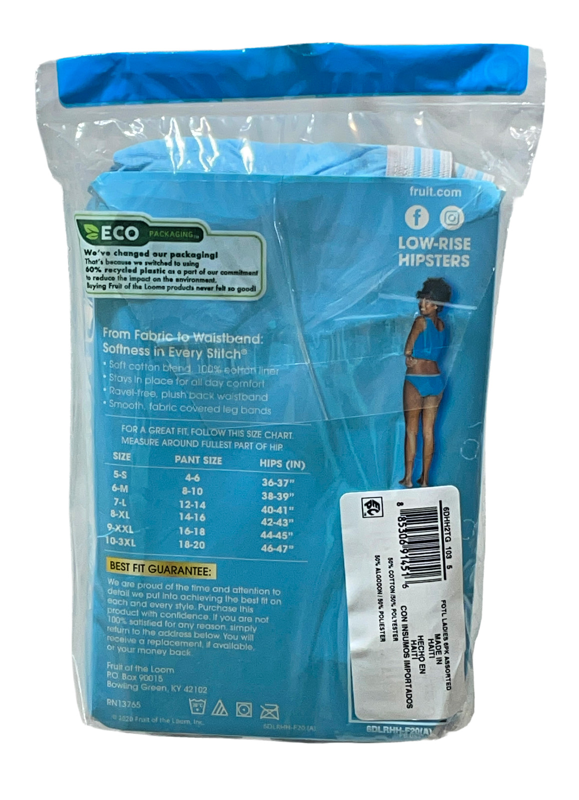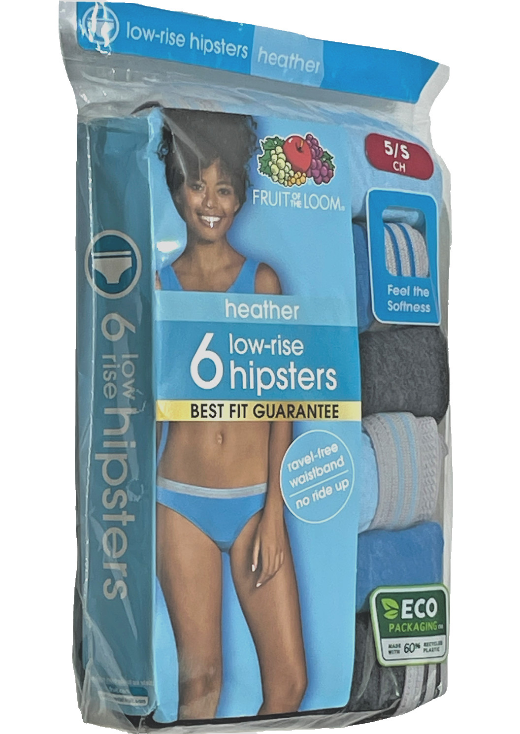 как выглядит Fruit of the Loom Low Rise Hipsters Women 5/S Blue Gray Cotton Blend 6 Pairs фото