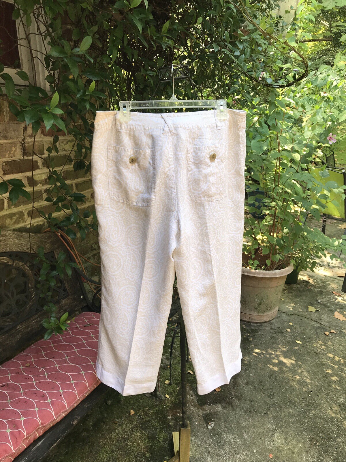 как выглядит Liz Claiborne- VINTAGE BEIGE/WHITE LINEN MICHAELA CROP PANTS- Size 12- EUC фото