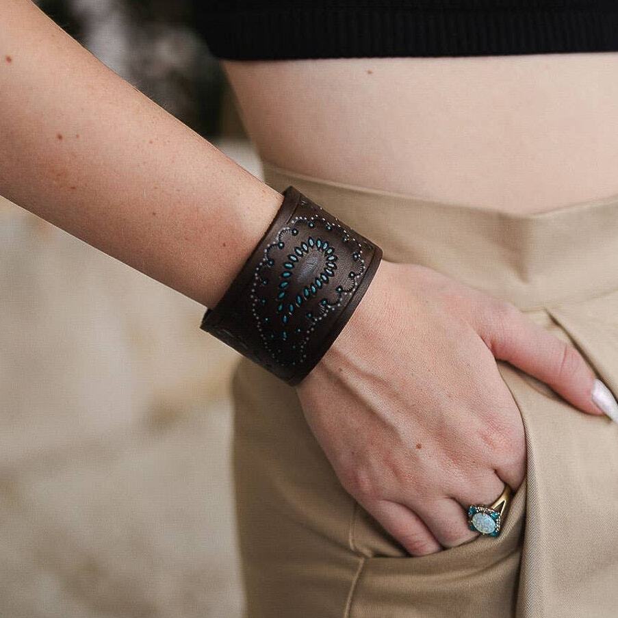 Boho Paisley Embossed Leather Snap Wrap Bracelet