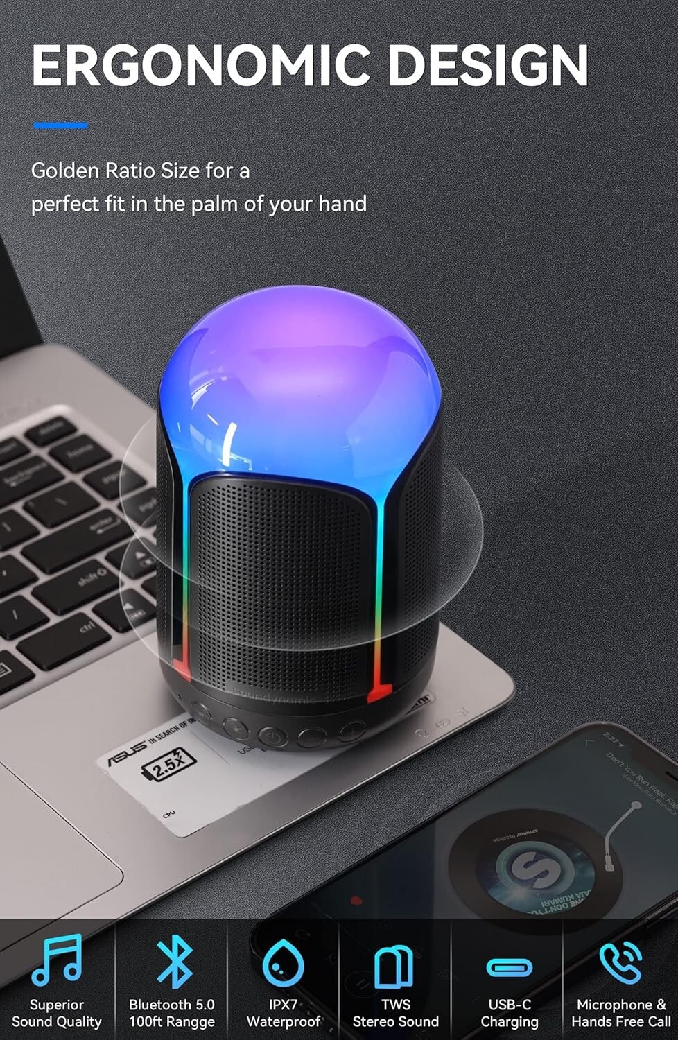 Vibe Bluetooth Speaker, Wireless with RGB LED Light Black