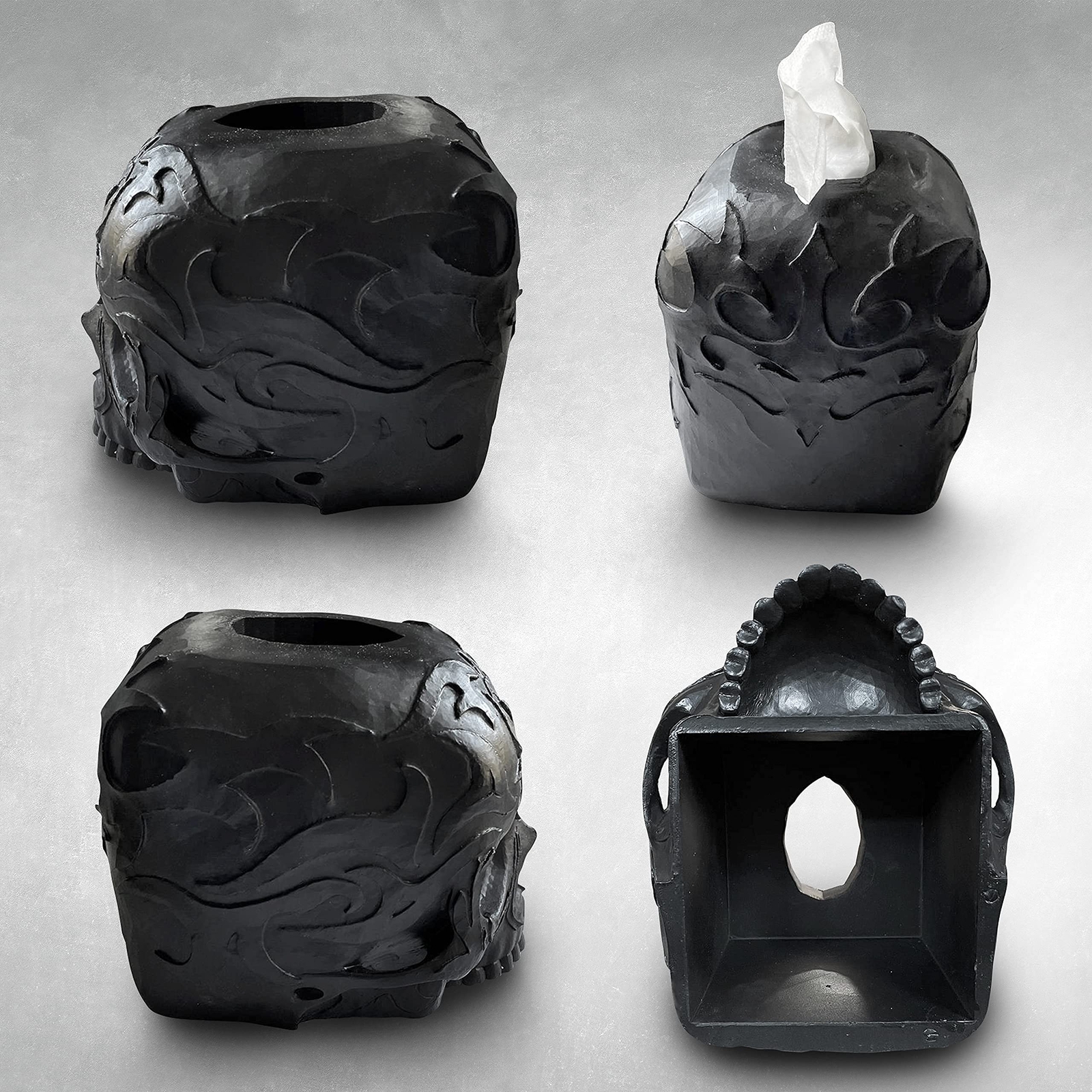 Skull Tissue Box Cover Square Black - Gothic Home Decor, Skull Gifts for Men ...