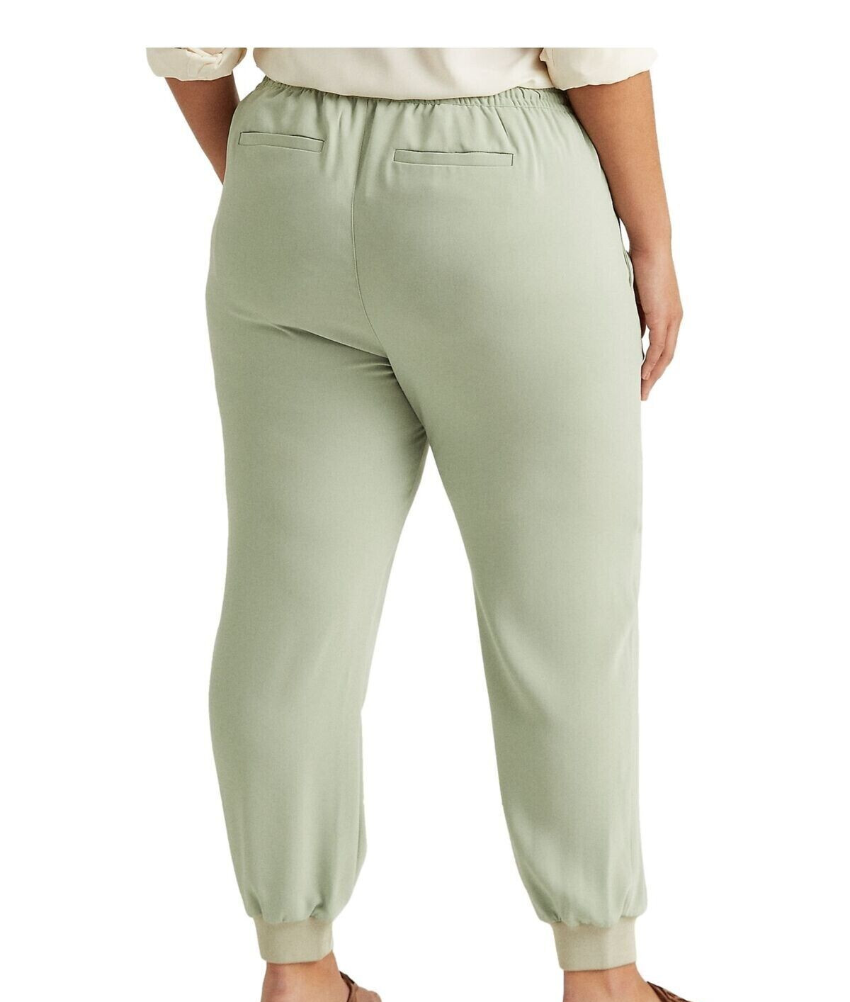 RALPH LAUREN Women's Green Drawstring Crepe Sweatpants Cuffed Pants Plus 18W