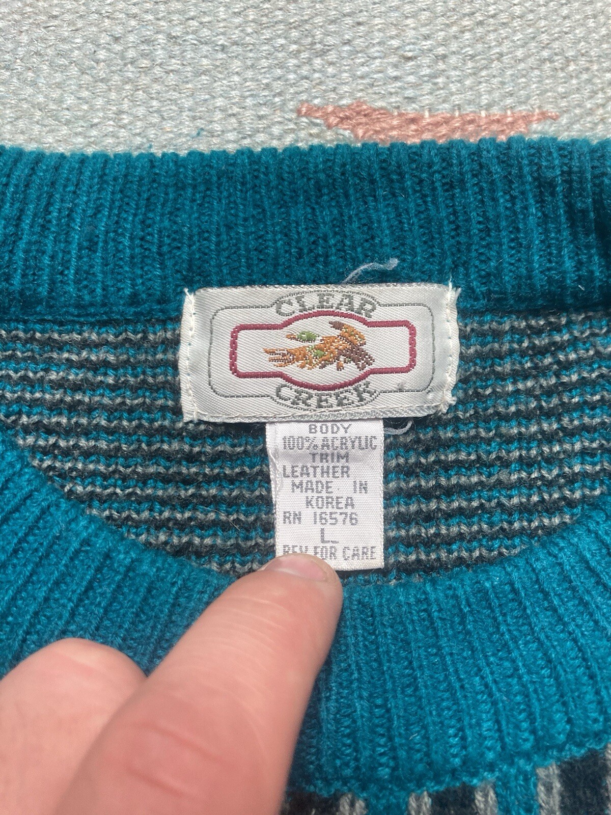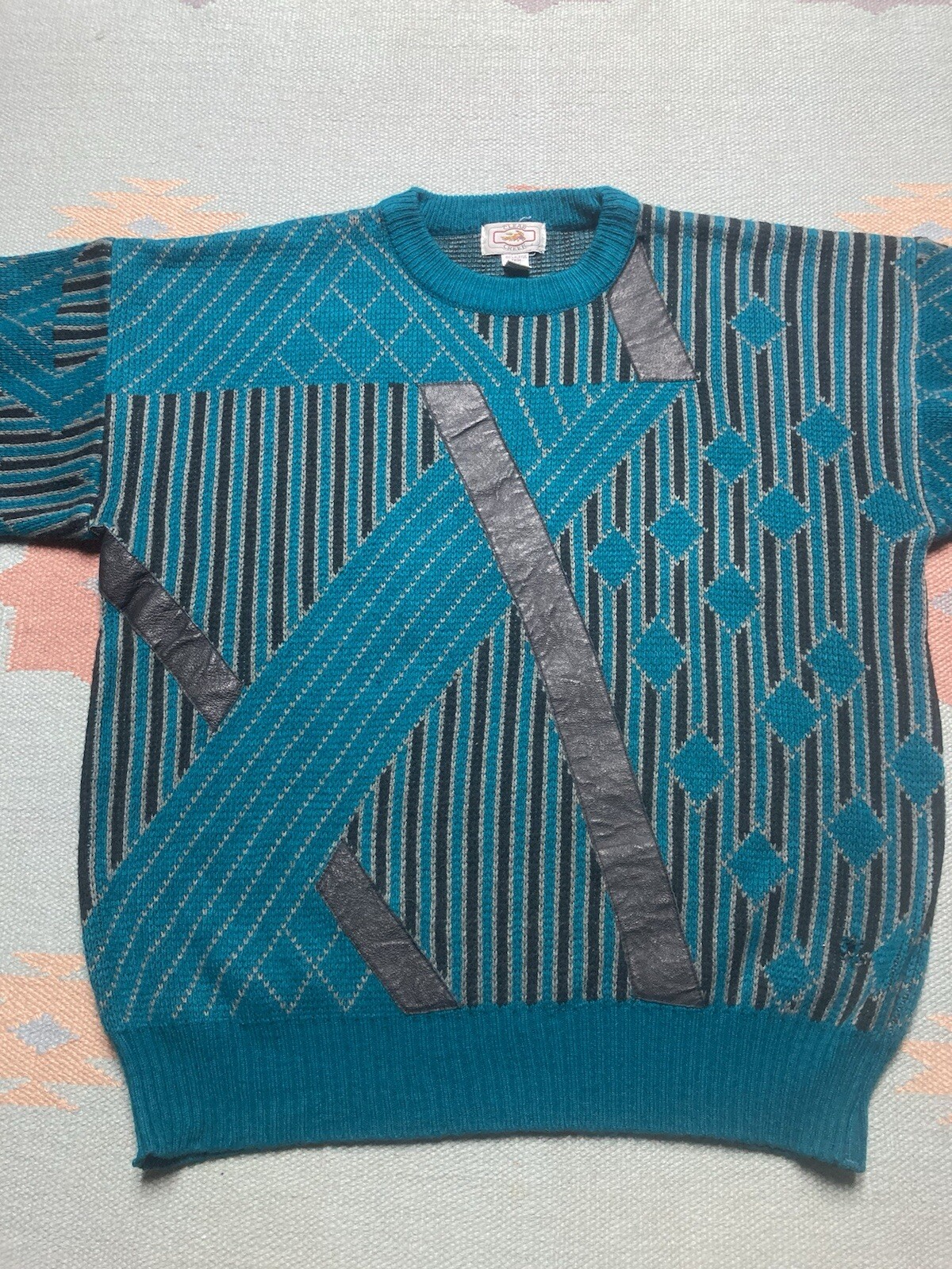 Vintage acrylic knit sweater geometric diamonds grandpa abstract crewneck large