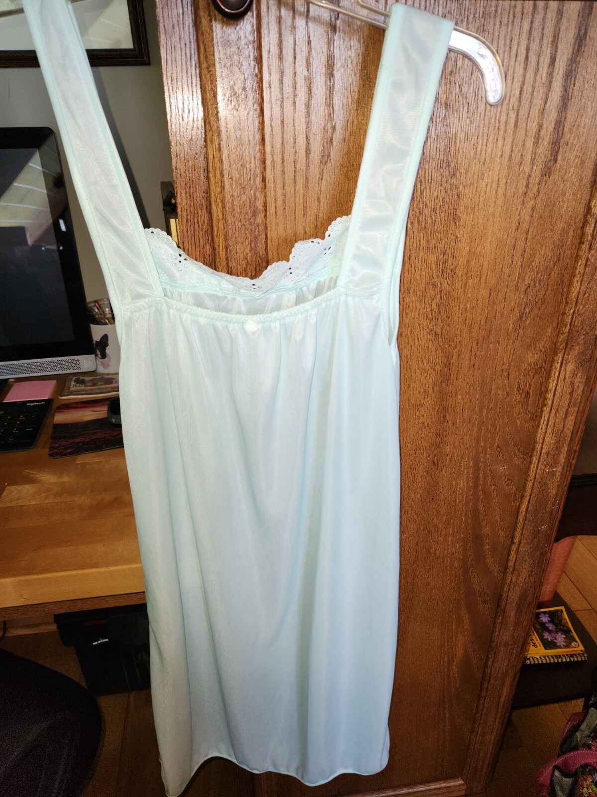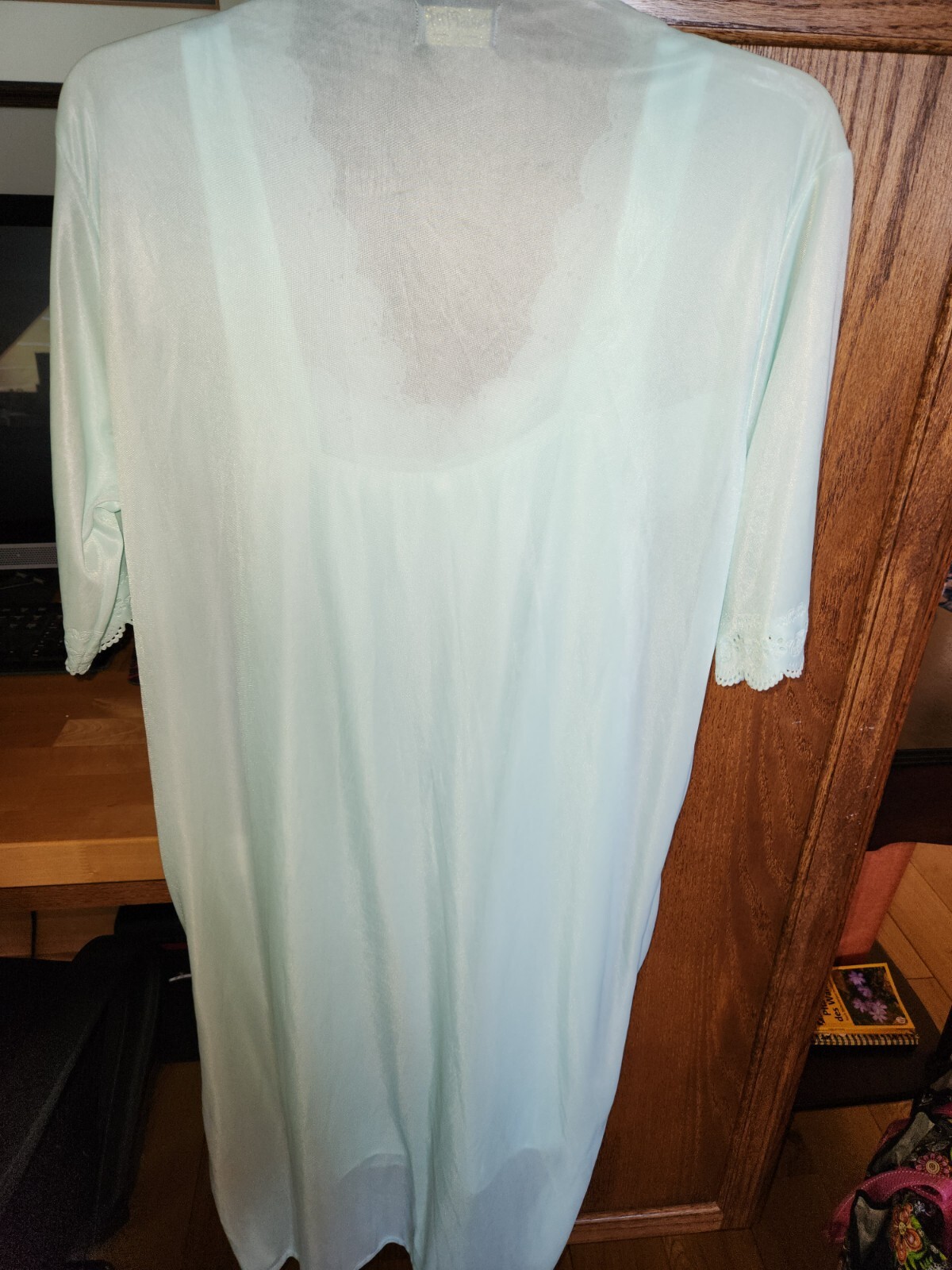 как выглядит Vintage Nightgown Peignoir 2 Piece Set, Nylon Green Sz M PARIS PINK фото