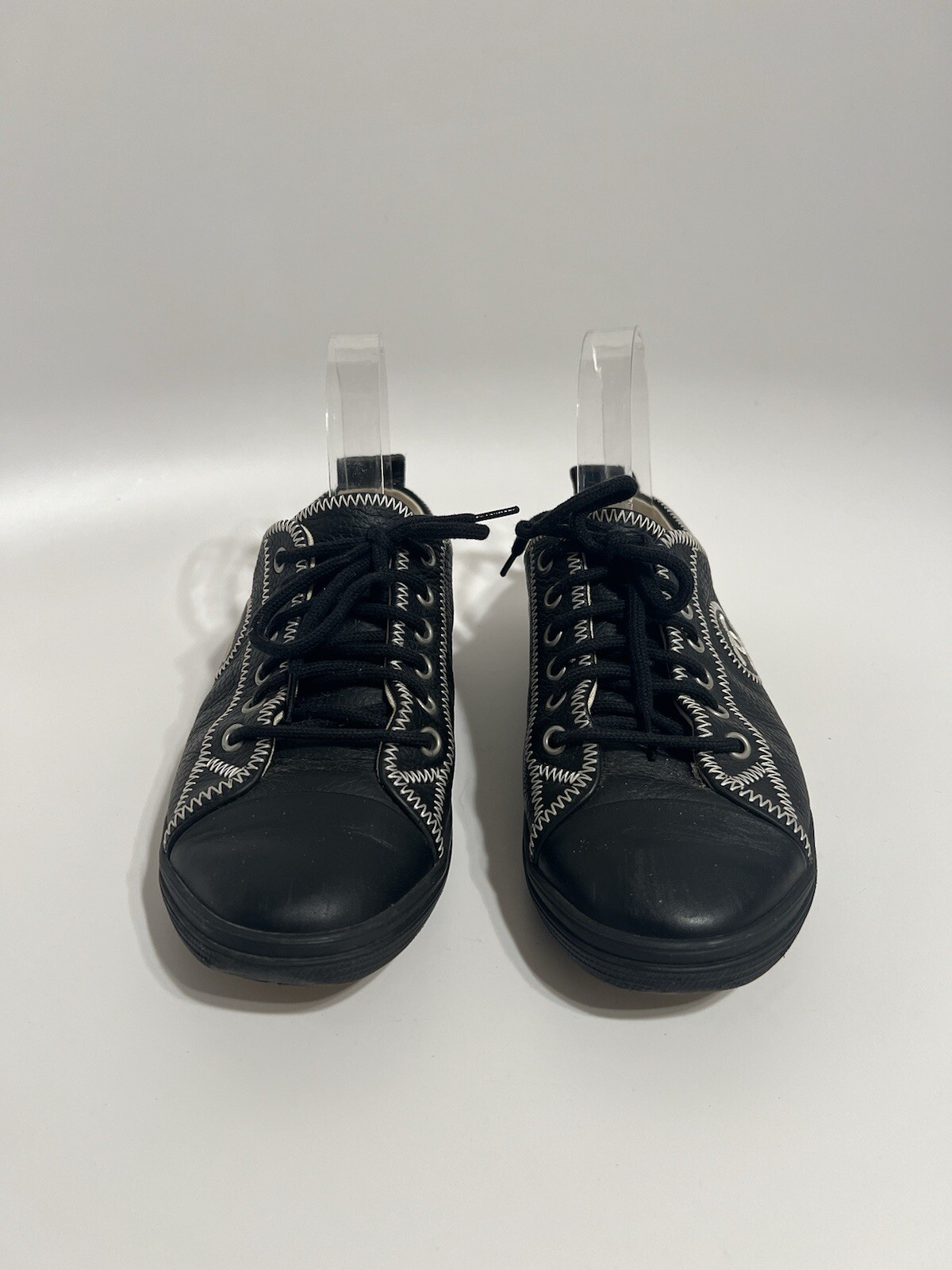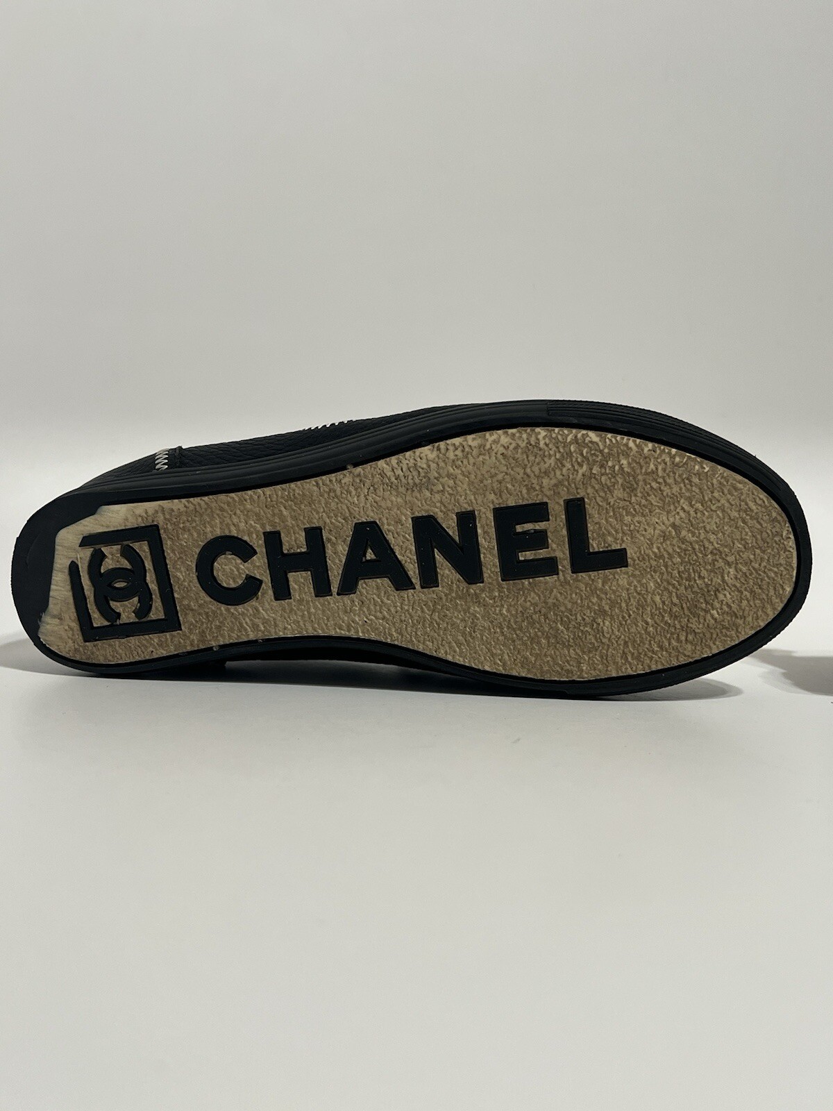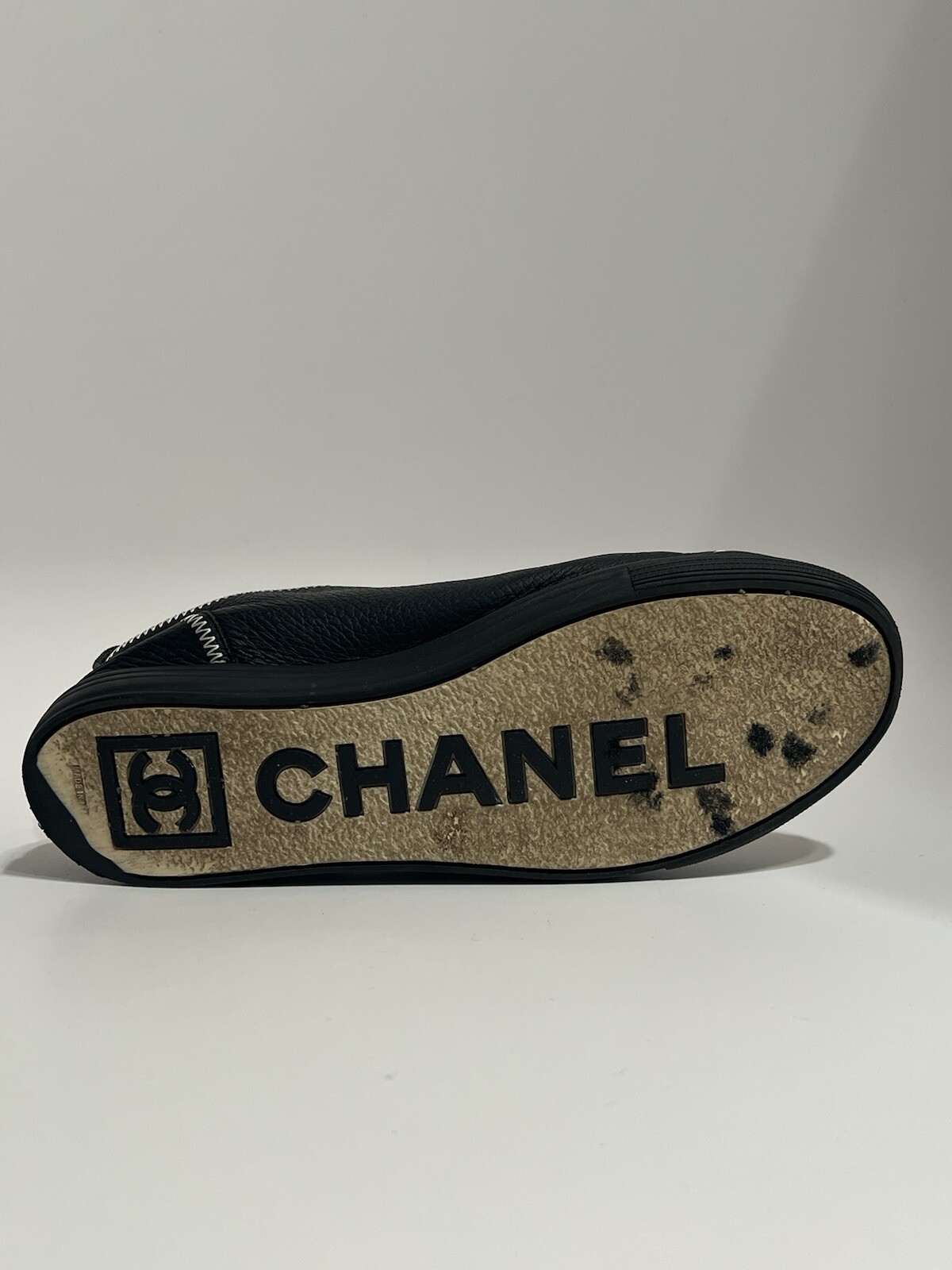 Vtg Chanel Black CC Logo Leather Sneakers 38