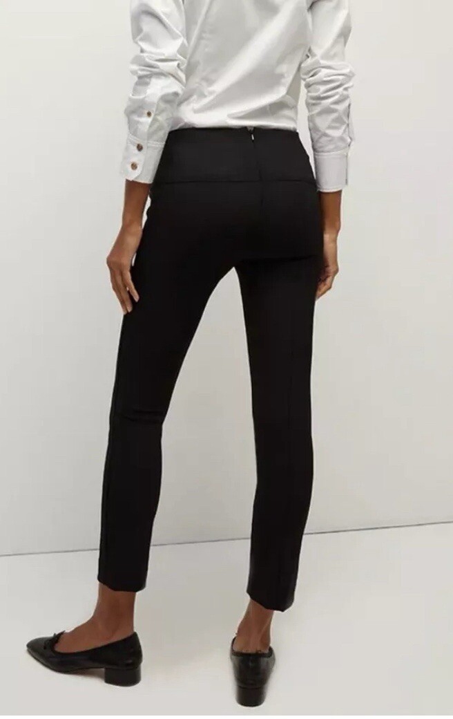 как выглядит VERONICA BEARD BLACK ZIP BACK Flat Front SLIM CROPPED Stretch PANTS Size 6 EUC фото