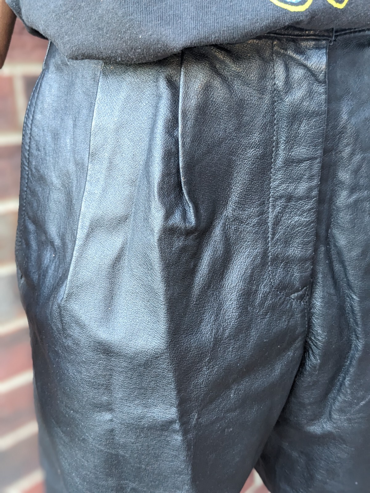 Vintage Black Leather Knee Length Pleated Shorts - Size 10 Best for XS or S