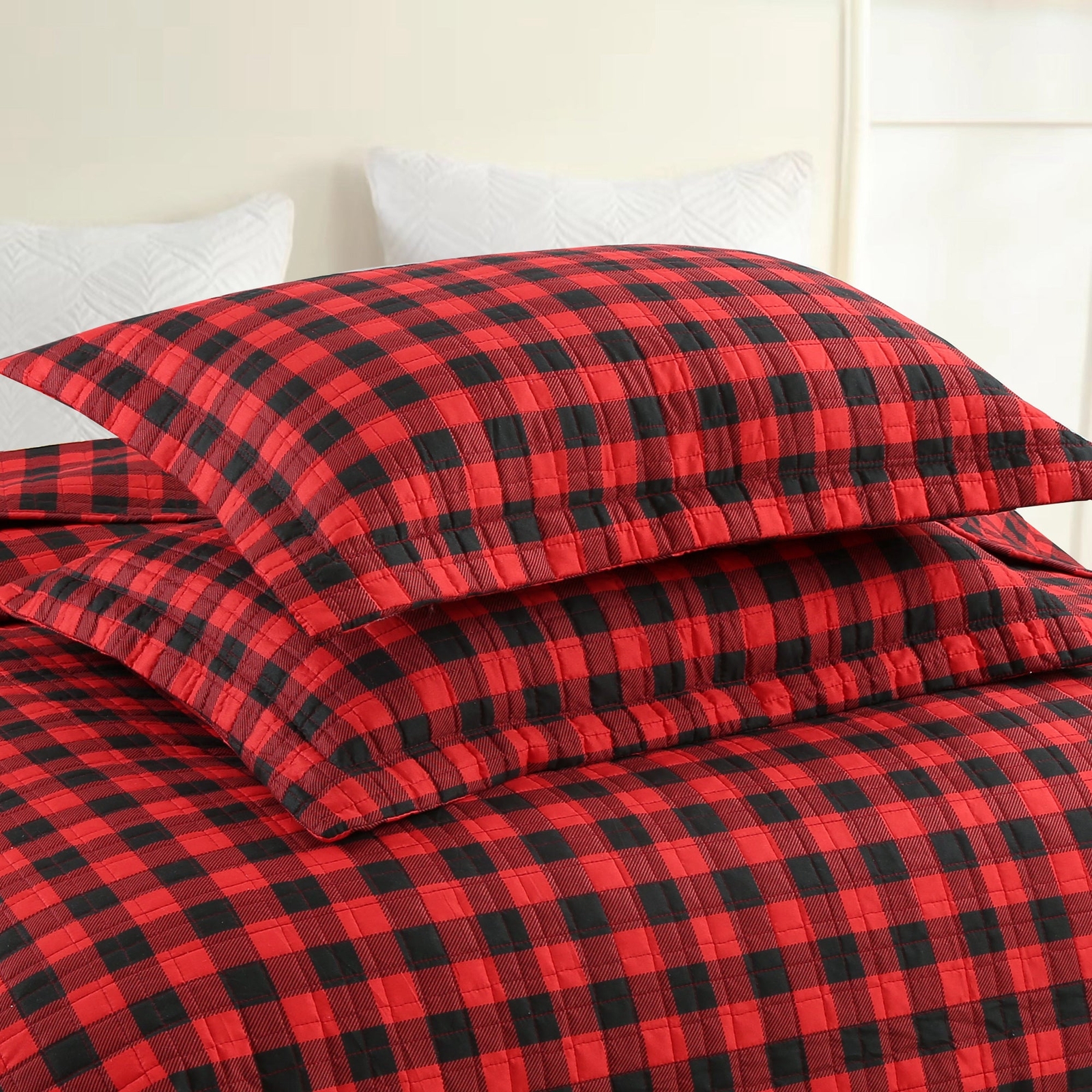 Festive Buffalo Plaid Check Quilt Set 3-Piece Gingham Christmas Bedding
