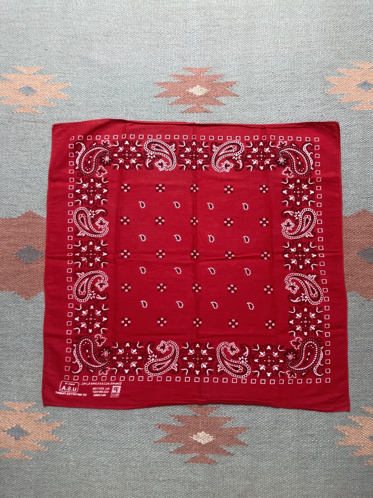 как выглядит Vintage Paris bandana handkerchief fast color paisley red cotton soft USA made фото